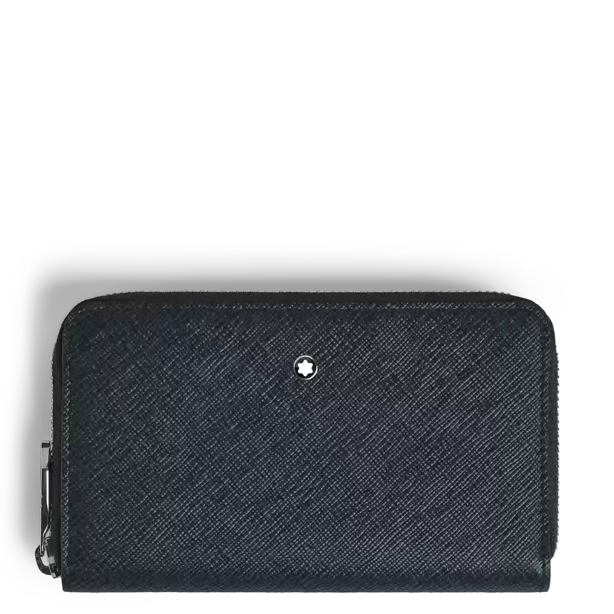 Diese funktionale Rundum-Geldbörse mit Reißverschluss verbindet zeitlosen Stil mit praktischer Funktionalität. Sie ist aus geprägtem Leder in einer eleganten Kombination aus Blau und Schwarz gefertigt und verfügt über einen markanten Metall-Reißverschlusszieher in Form einer Feder, der eine Hommage an die Schreibkunsttradition von Montblanc darstellt. Im Inneren bietet die Geldbörse 12 Kreditkartenfächer, ein sicheres Münzfach mit Reißverschluss und drei zusätzliche Fächer für Quittungen oder andere wichtige Dinge.