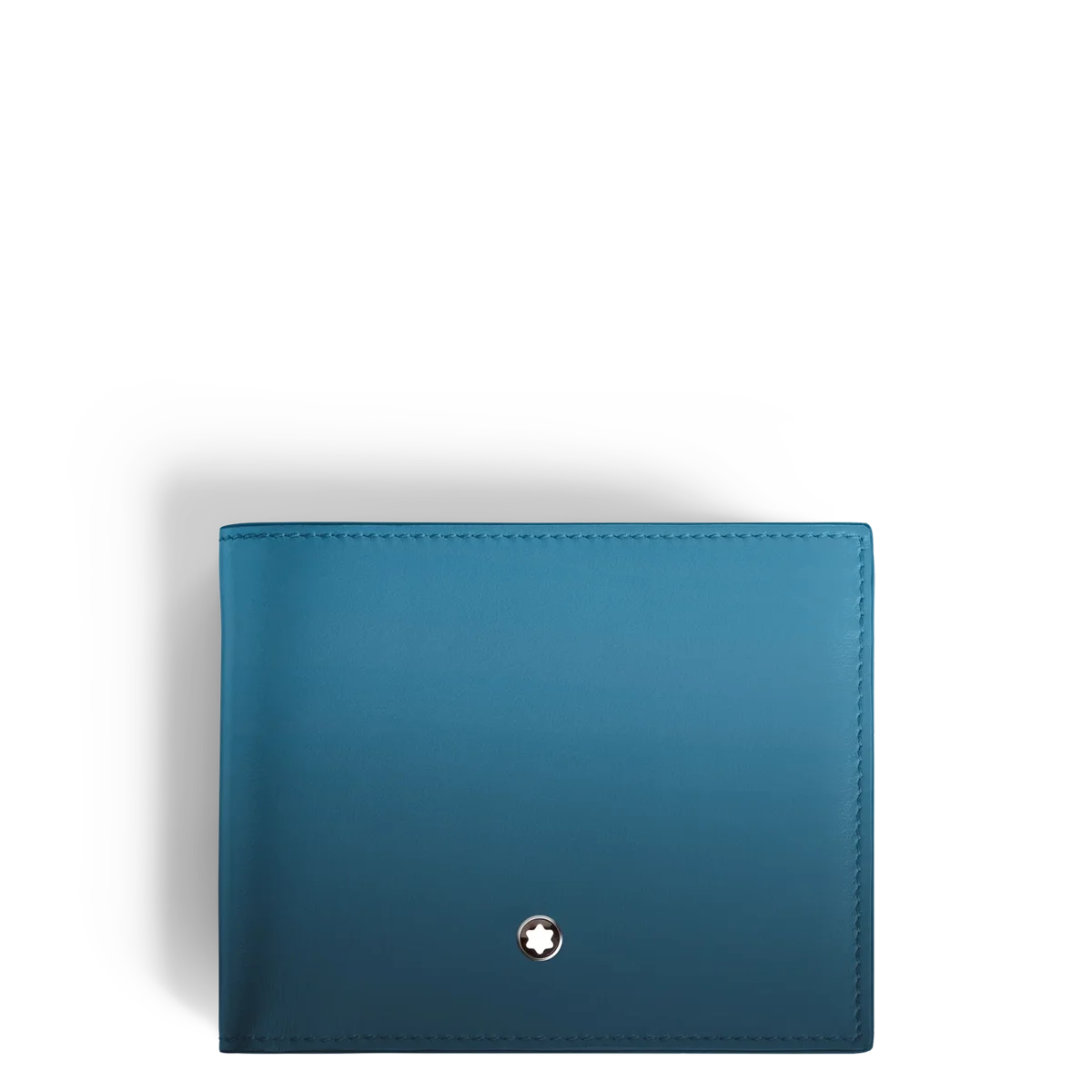 Die Meisterstück Geldbörse ist ein luxuriöses Accessoire für den Alltag, gefertigt aus tief glänzendem, rauchblauem Leder, das durch einen manuell aufgetragenen Sfumato-Effekt veredelt wurde. Elegant und funktional bietet sie Platz für bis zu sechs Kreditkarten in den dafür vorgesehenen Fächern. Zwei Fächer für Banknoten und Quittungen sowie zwei zusätzliche Taschen für Banknoten runden die Geldbörse mit zusätzlichem Stauraum ab.