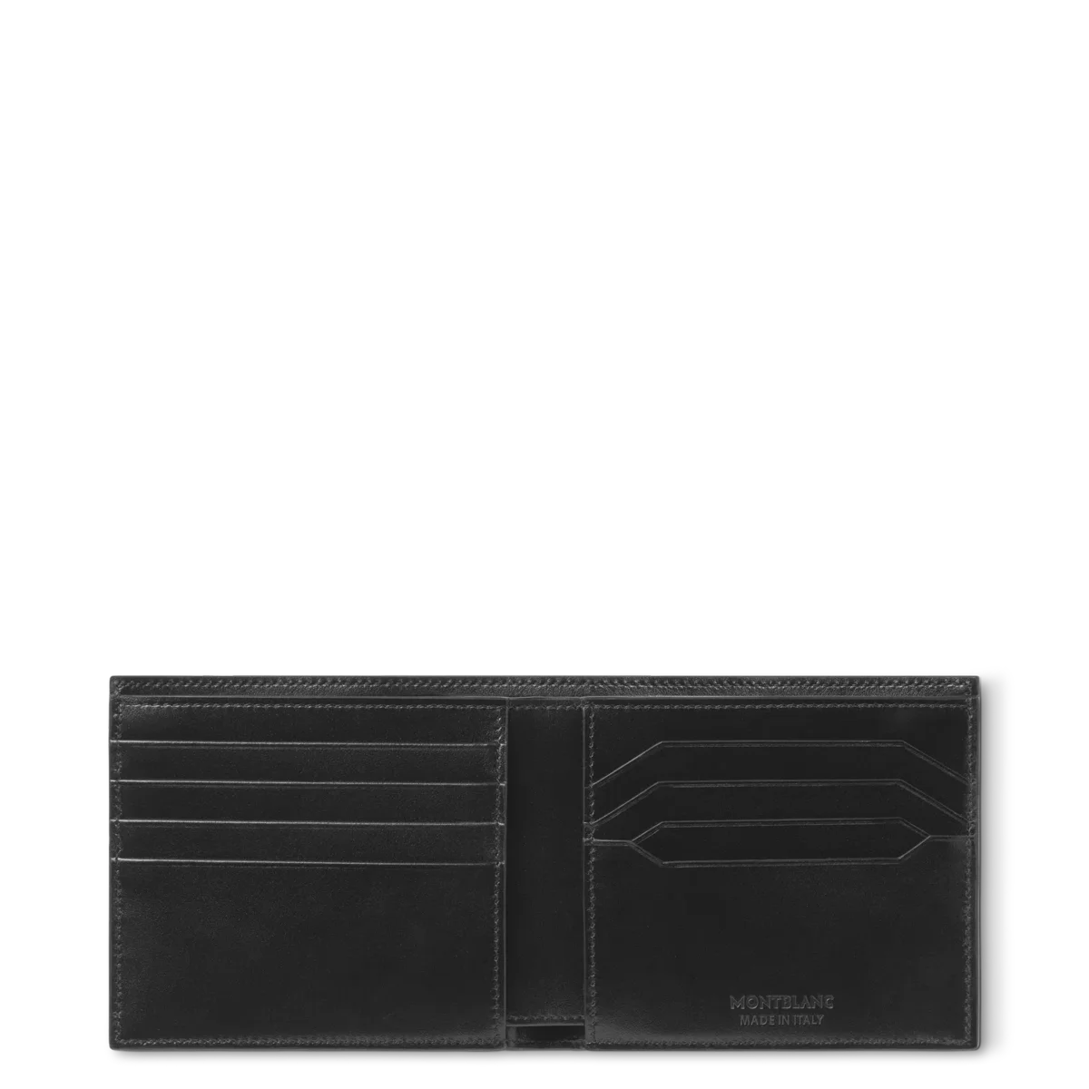 Die elegante Meisterstück 8cc ist eine schlanke und kompakte Brieftasche mit zwei Fächern, die Platz für acht Kreditkarten in speziellen Fächern bietet, sowie zwei Fächern für Banknoten und zwei zusätzlichen Fächern für Quittungen oder kleine Utensilien. Sie ist aus feinstem Leder gefertigt, mit schwarzem Stoff gefüttert und mit dem Montblanc Emblem verziert.
