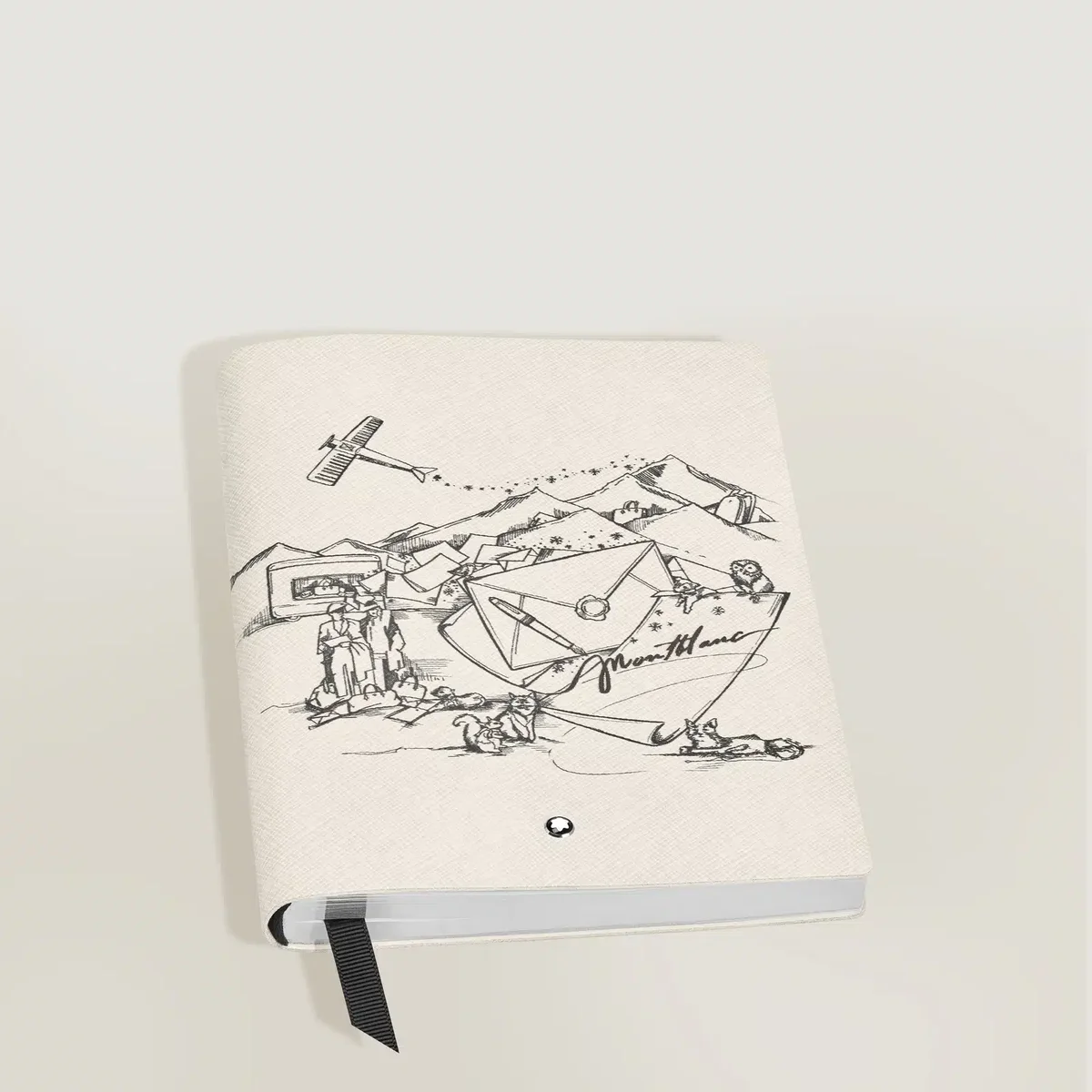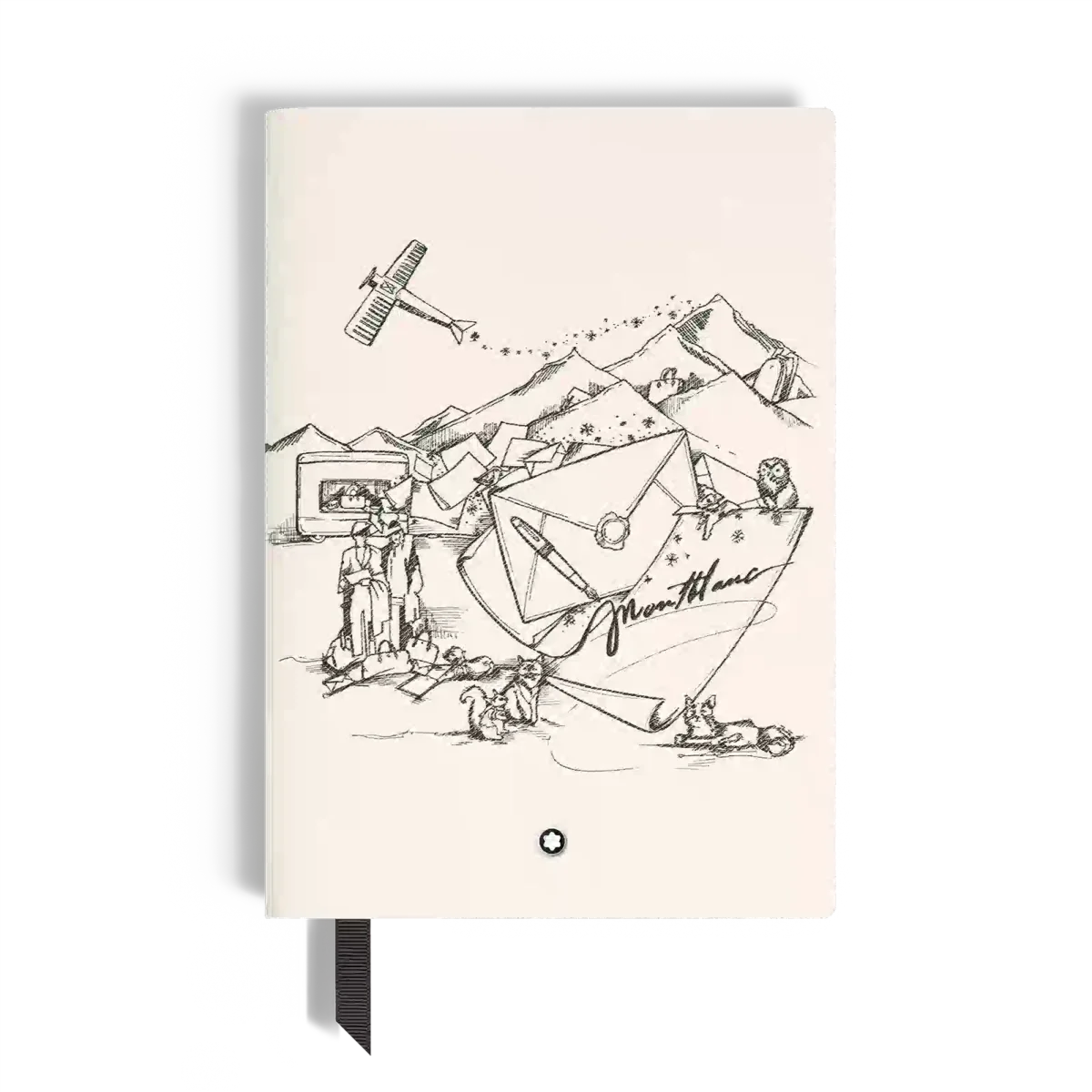 Das Notizbuch ist mit einer monochromen Illustration im Handzeichnungsstil verziert. Inspiriert von einer Montblanc-Werbung aus dem Jahr 1924, die ein reisendes Paar zeigt, platziert die Illustration die beiden Reisenden nun am Fuße des Mont Blanc, umgeben von Vintage-Flugzeugen, Zügen und fliegenden Briefen. Das nostalgische Motiv zelebriert nicht nur die physische Reise und das Wunder der Erkundung, sondern auch die Reise des Geschichtenerzählens über Zeit und Entfernung hinweg und spiegelt Montblancs unerschütterlichen Glauben an die Verbindung durch das Schreiben wider. Dieses Notizbuch, das in Italien aus feinstem Leder fachmännisch handgefertigt wurde, verfügt über 96 exquisite Blätter, auf denen Sie Ihre Gedanken und Träume festhalten können. Dieses mittelgroße Notizbuch vereint Eleganz mit Funktionalität und lässt sich mühelos vom Schreibtisch in Ihre Tasche stecken, um Sie bei Ihren schönsten Momenten zu begleiten. Hergestellt in Italien. Maße 150 x 210 mm. Ident-Nr. MB136668