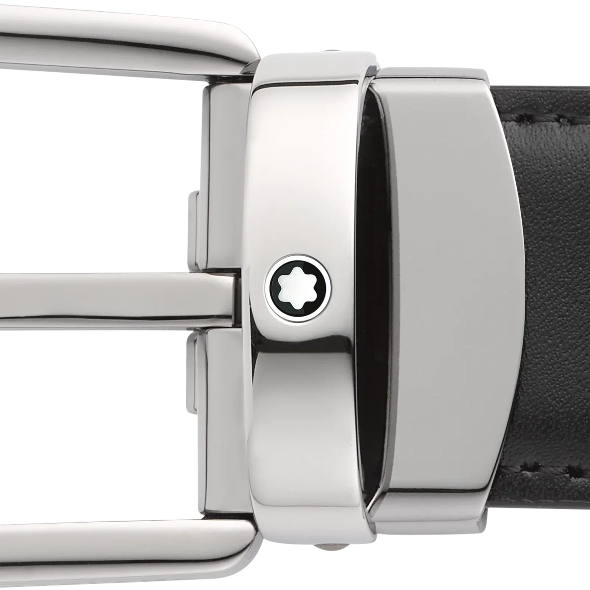 Hufeisenförmige Schnalle mit glänzender Ruthenium-Oberfläche. Selbstverstellbarer, 3 cm x 120 cm großer, wendbarer Lederriemen in Schwarz und Braun. Für einen klassischen Look mit dem gewissen Etwas.