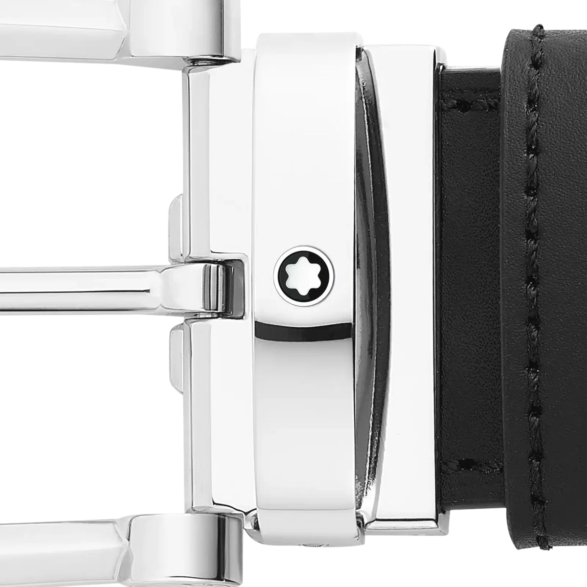 Entdecken Sie alle Details des Ledergürtels mit Hufeisen-Schnalle in Schwarz/Braun, 35 mm, wendbar. Kaufen Sie online im offiziellen Montblanc Store.