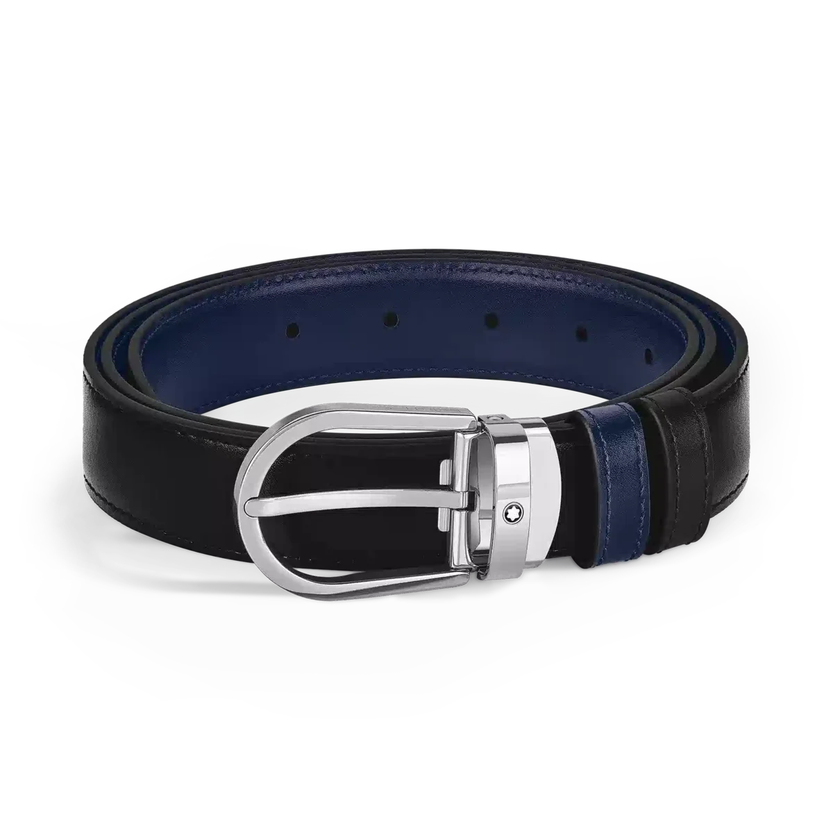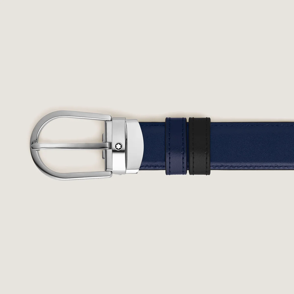 Dieser wendbare Gürtel vereint dezente Eleganz und Funktionalität und bietet zwei unterschiedliche Styles in einem Accessoire. Mit unserer charakteristischen Montblanc Hufeisenschnalle in Palladium-Finish präsentiert sich eine Seite des 35-mm-Gürtels in schwarzem Saffiano-Leder, während die Rückseite mit Meisterstück-Leder in Tintenblau für klassische Raffinesse sorgt.