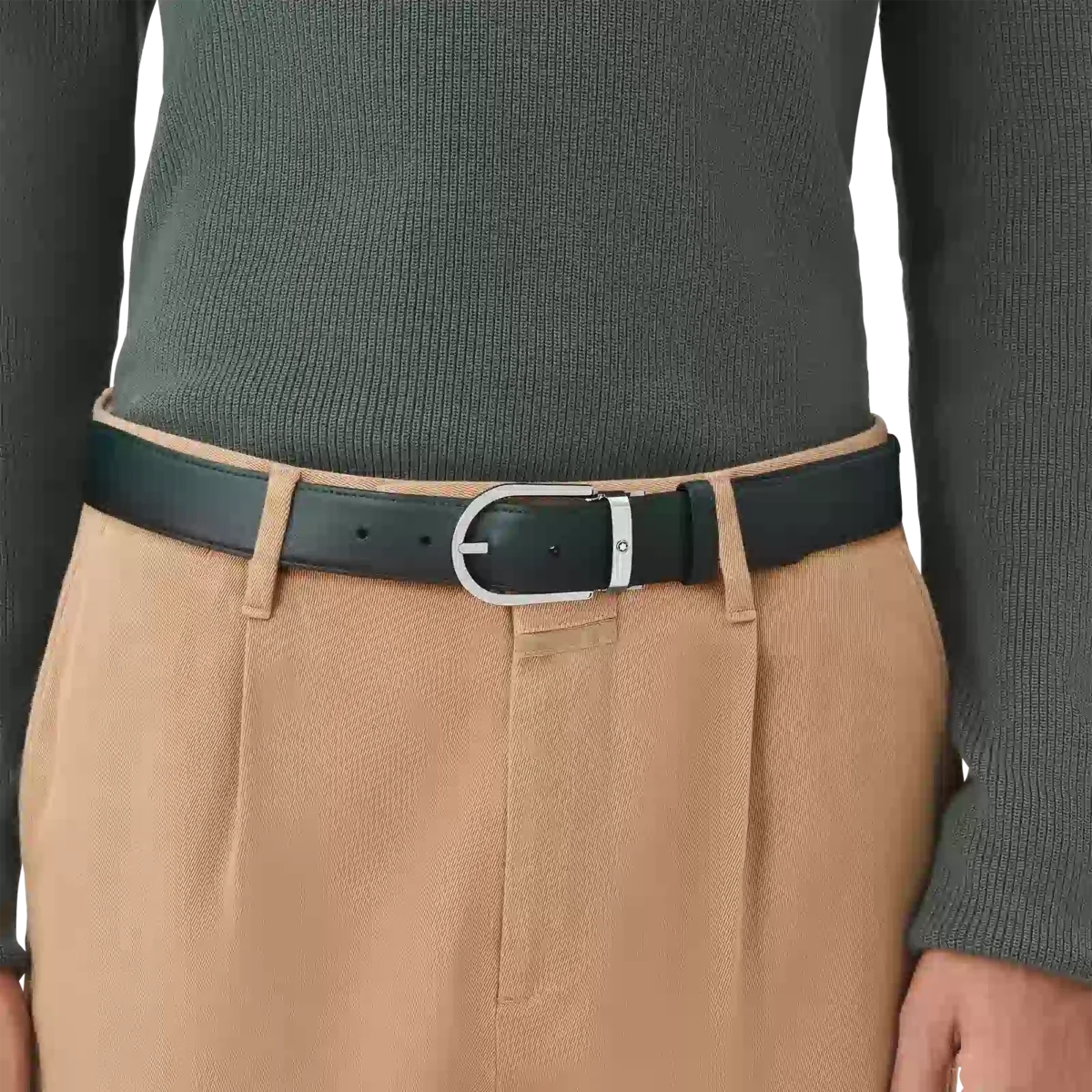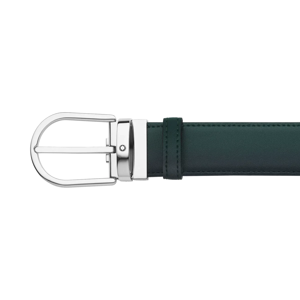 Dieser 35-mm-Gürtel aus feinstem Glattleder ist mit einer zeitlosen Palladium-Hufeisenschnalle versehen. Das raffinierte Sfumato British Green ist eine Hommage an die Originalfarben unseres Kultprodukts – dem Montblanc Meisterstück.