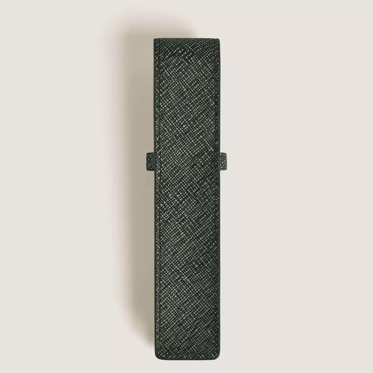 Dieses elegante Etui ist ein stilvoller Begleiter für Ihr wertvollstes Schreibgerät. Es ist aus geprägtem Sartorial-Leder in einer raffinierten zweifarbigen Kombination aus edlem Khaki und Schwarz gefertigt. Seine überlappende Silhouette ist von der Form eines Umschlags inspiriert und verankert es tiefer in der Kultur des Schreibens.