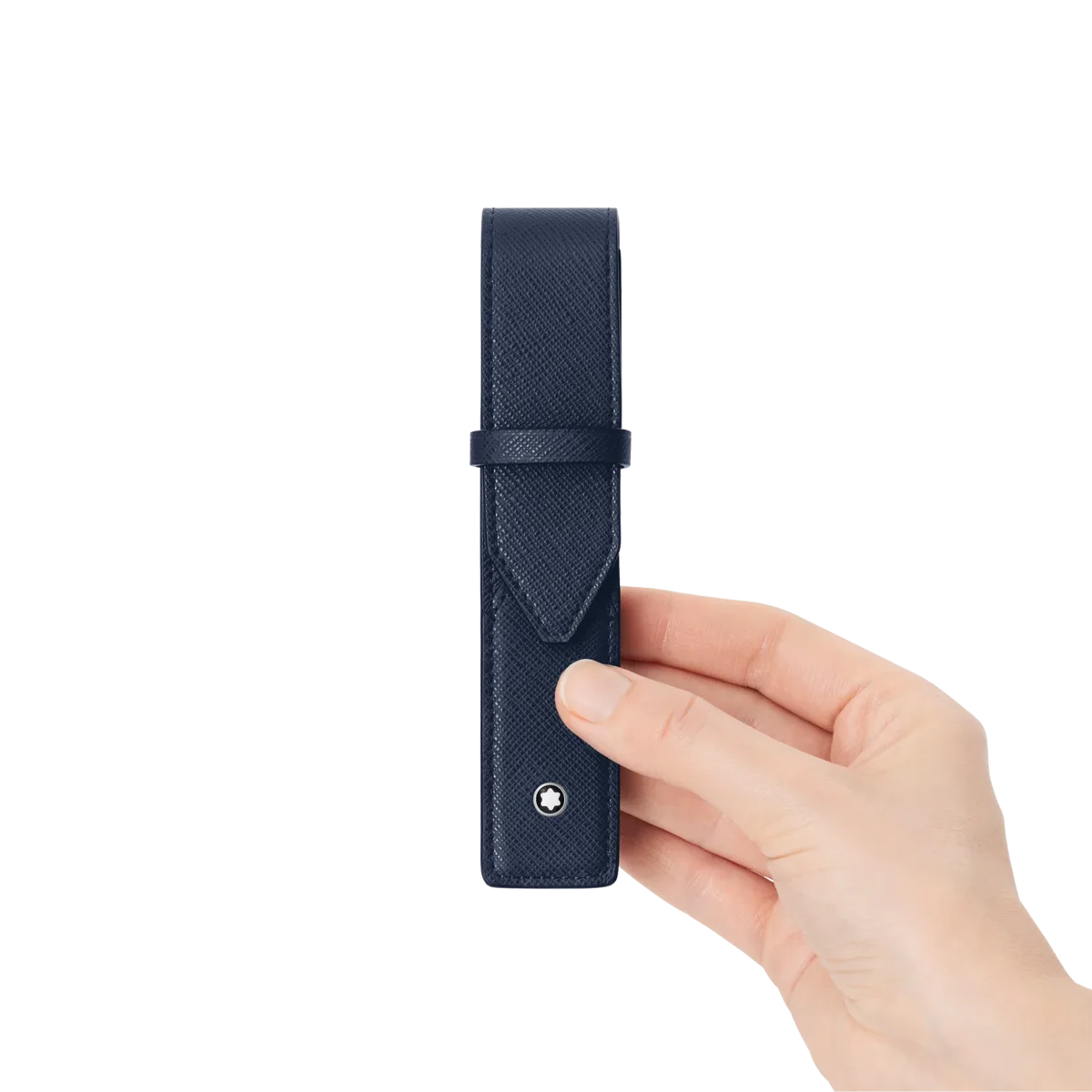 Bewahren Sie Ihr Schreibgerät sicher und stilvoll in dieser speziellen Stifttasche auf. Vollnarbiges, tintblaues Leder sorgt für eine angenehme Haptik, während die überlappende Silhouette an die Form eines Umschlags erinnert und damit eine weitere Hommage an das geschriebene Wort darstellt.