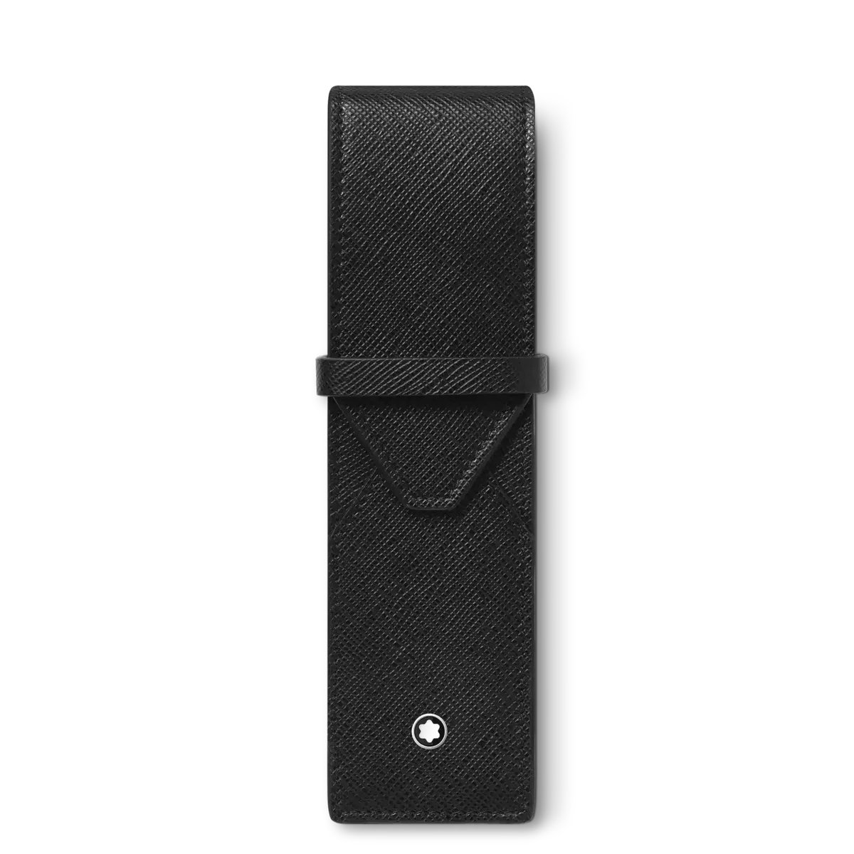 Diese elegante Stifttasche ist ein unverzichtbarer Begleiter für Geschäftsleute und Liebhaber des geschriebenen Wortes und bietet Platz für zwei Schreibgeräte. Ihr Design aus Vollnarbenleder wurde von der Form eines Umschlags inspiriert und zeichnet sich durch überlappende Formen aus.