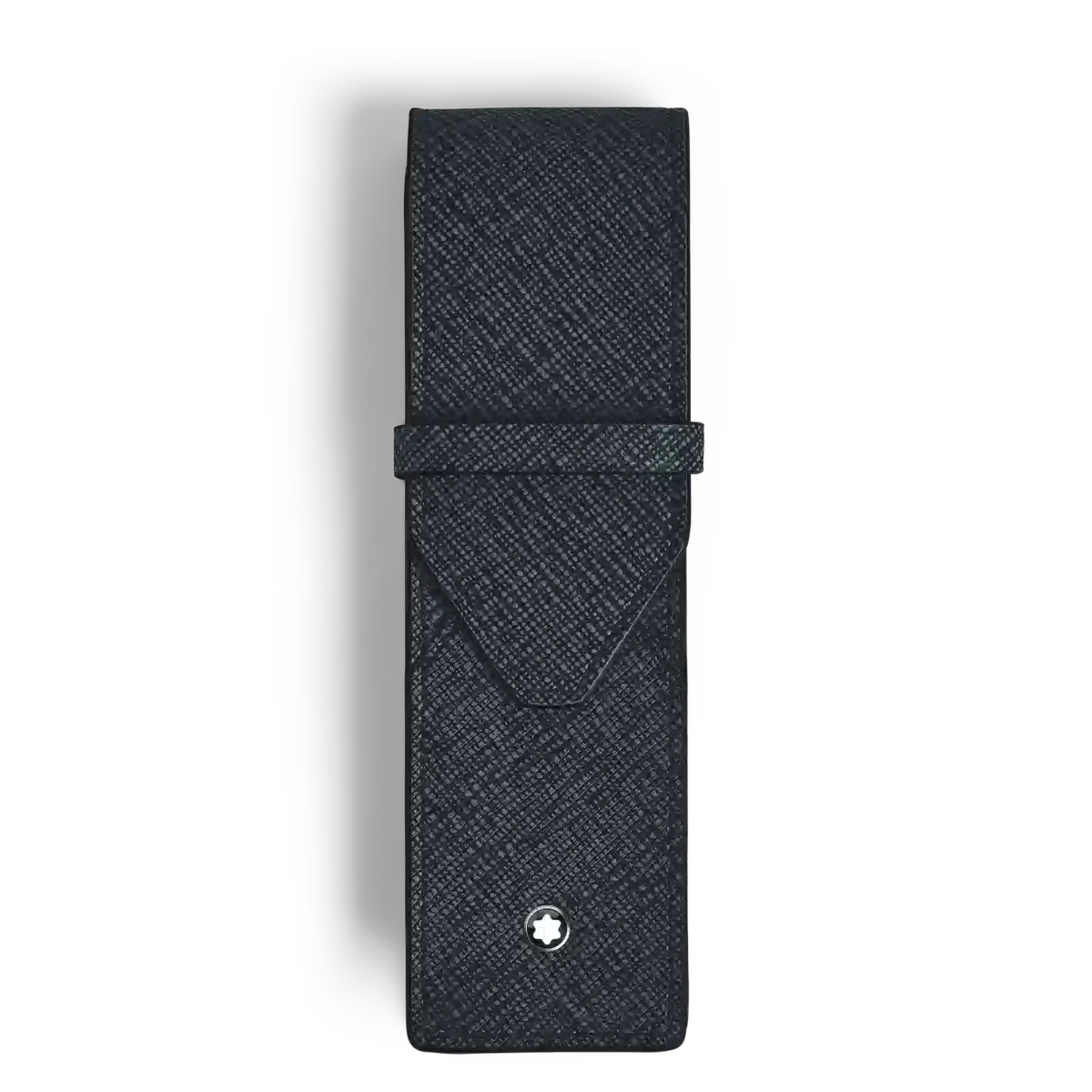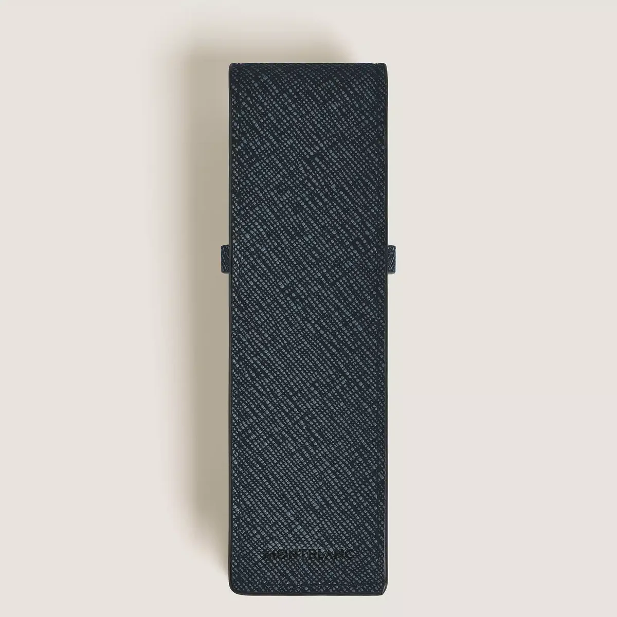 Dieses elegante und raffinierte Accessoire ist für die Aufbewahrung von bis zu zwei Schreibgeräten konzipiert. Es ist aus geprägtem Sartorial-Leder in einer eleganten zweifarbigen Kombination aus klassischem Blau und Schwarz gefertigt. Seine überlappende Silhouette ist von der Form eines Umschlags inspiriert und eine Hommage an die Kultur des Schreibens.