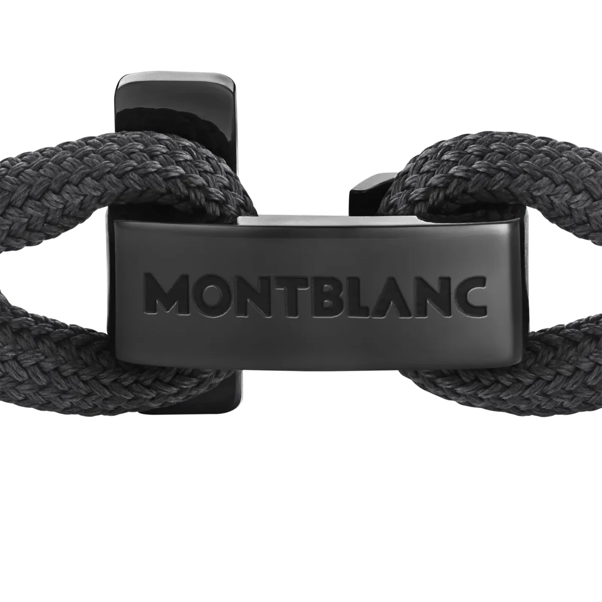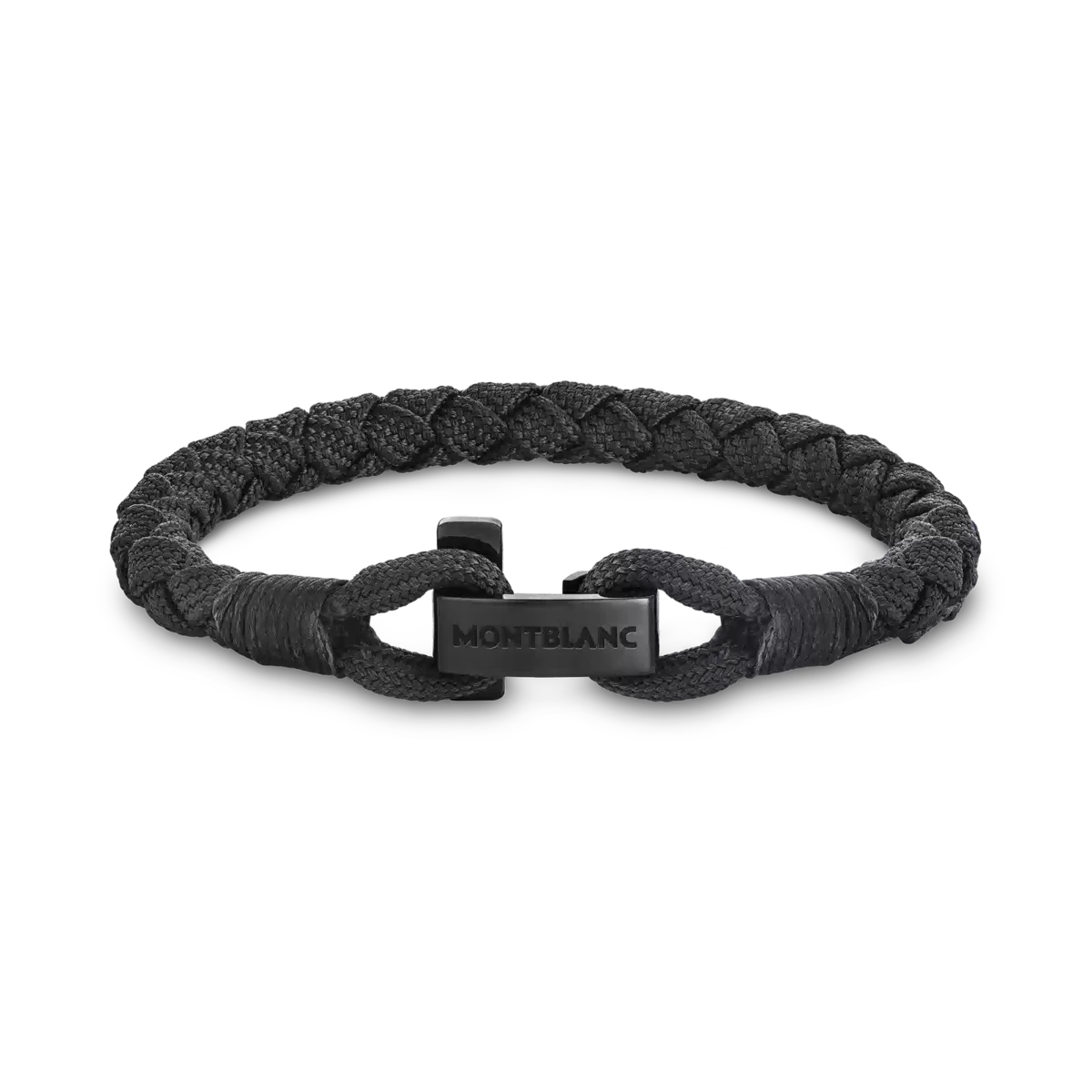 Das Schmuckstück hat ein Armband aus schwarzem Nylon und einen T-Hakenverschluss aus Edelstahl mit schwarzer PVD-Beschichtung.