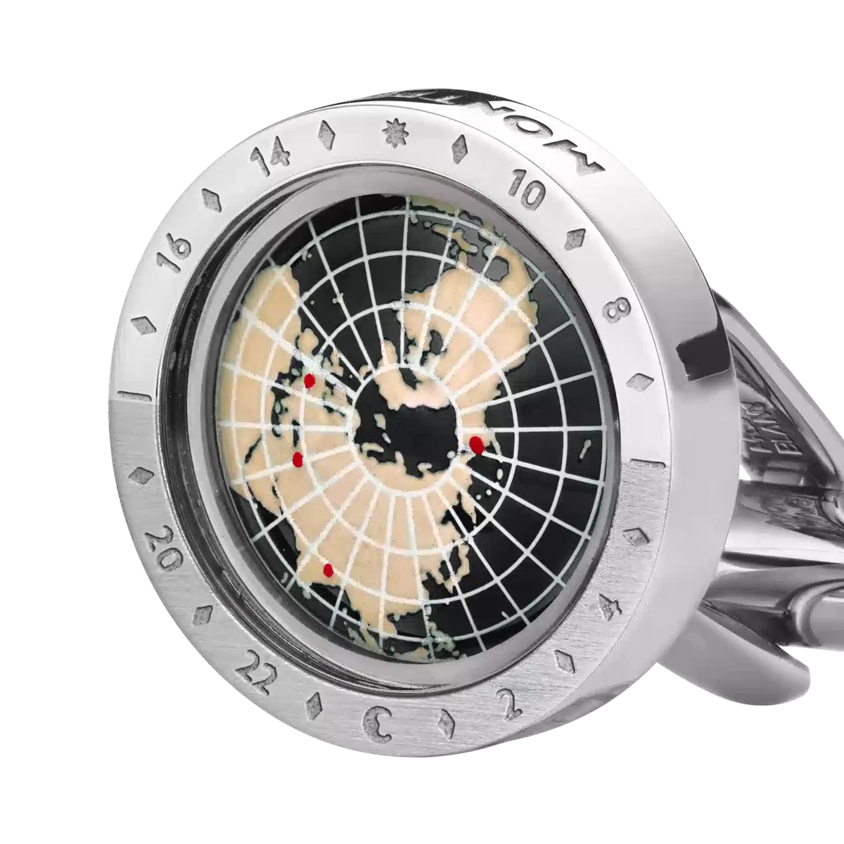 Die Manschettenknöpfe Montblanc 1858 Geosphere sind ein Spiegelbild ihrer Zeit. Das halbkugelförmige Element mit all seinen Details bildet ein Schmuckstück, das eine Konstellation offenbart und damit an die Idee anknüpft, den Blick zu den Sternen zu richten, um seinen Weg zu finden. Die Montblanc 1858 Geosphere Kollektion ist eine Hommage an das Design der Montblanc 1858 Geosphere Uhrenkollektion.