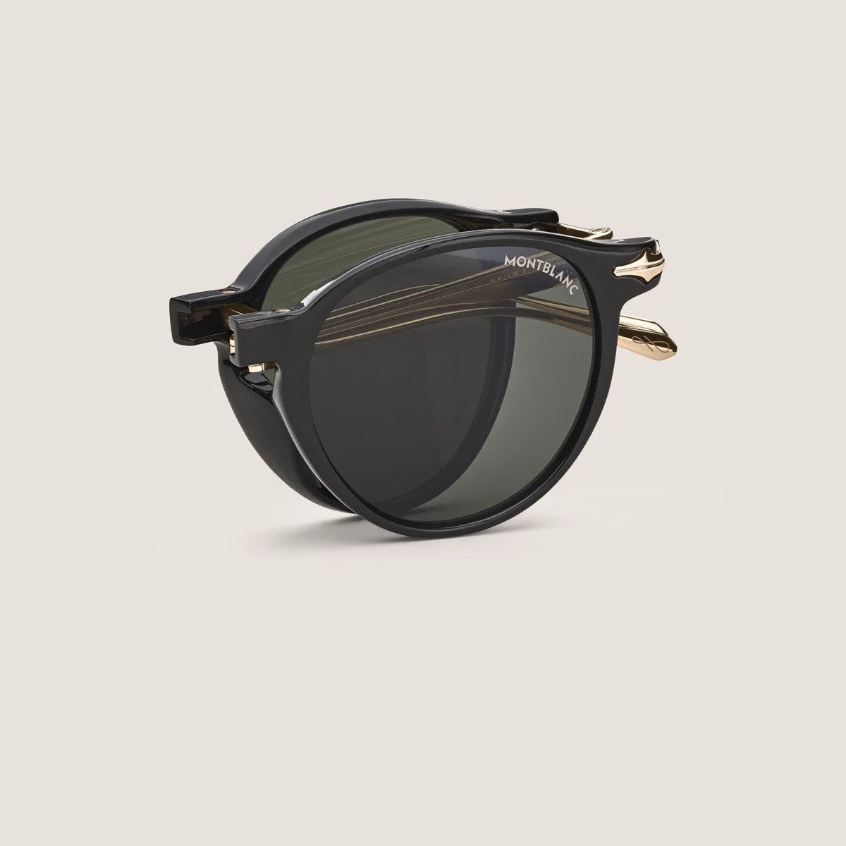 Diese Sonnenbrille im ovalen Stil hat einen schwarz gefärbten, eingespritzten Rahmen und graue Gläser. Inspiriert vom Federkiel-Design der Schreibgeräte, ziert ein dekoratives Federkiel-Detail das Metallbügel-Design. Dieses Modell ist vollständig faltbar. Das Montblanc One Line-Logo ist auf der rechten Seite des Bügels eingraviert, zusätzlich ist das Logo auf die linke Linse gelasert und ein dekoratives Detail ist auf die Bügelenden graviert. Ident-Nr. MB135569