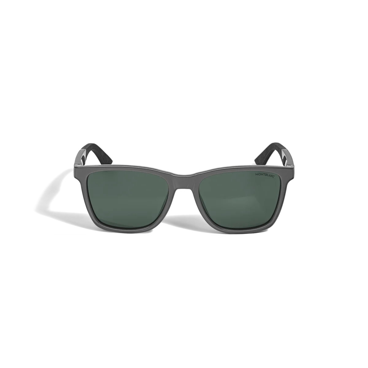 Entdecken Sie alle Details der eckigen Sonnenbrille mit grauem Spritzgussrahmen. Kaufen Sie online im offiziellen Montblanc Store.