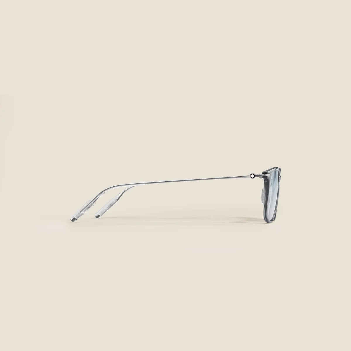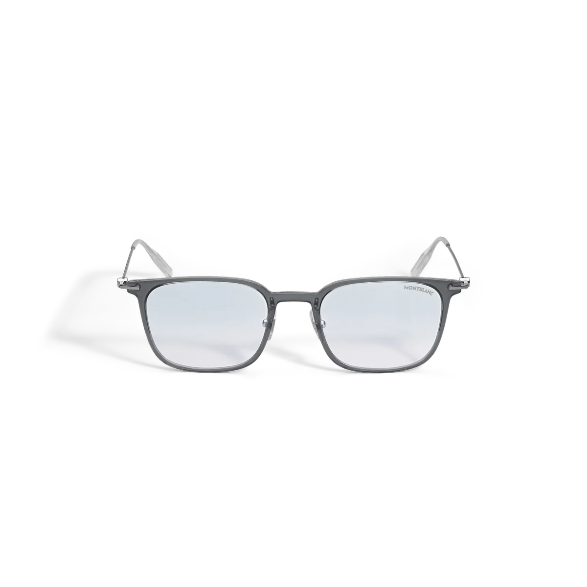 Diese Sonnenbrille im eckigen Stil hat einen grau gespritzten Rahmen und photochrome Gläser, die sich je nach Sonneneinstrahlung in ihrer Tönung anpassen. Das Montblanc Emblem ist in das Bügeldesign integriert. Das Montblanc-Logo ist auf das linke Brillenglas gelasert, und die Innenseite der Bügelenden ist mit einem rutschfesten Muster versehen, um den Tragekomfort zu erhöhen.