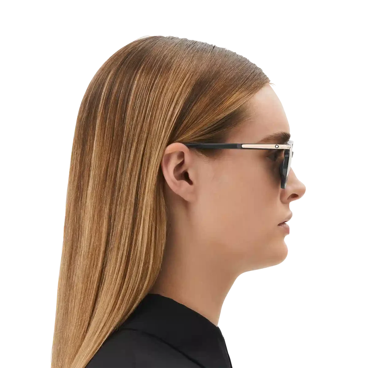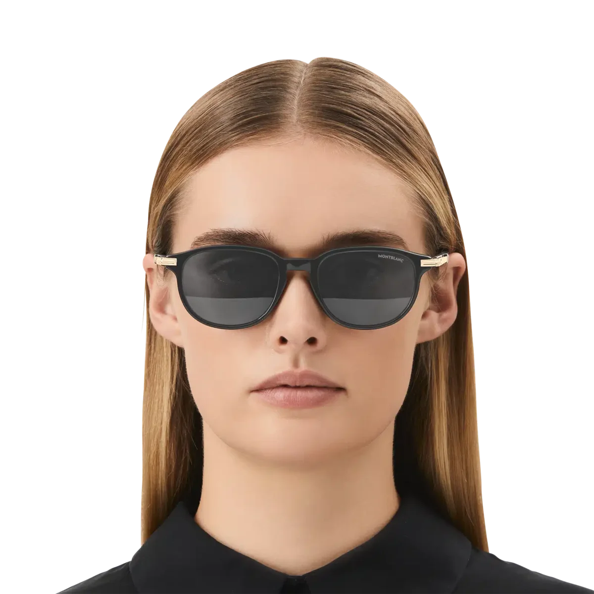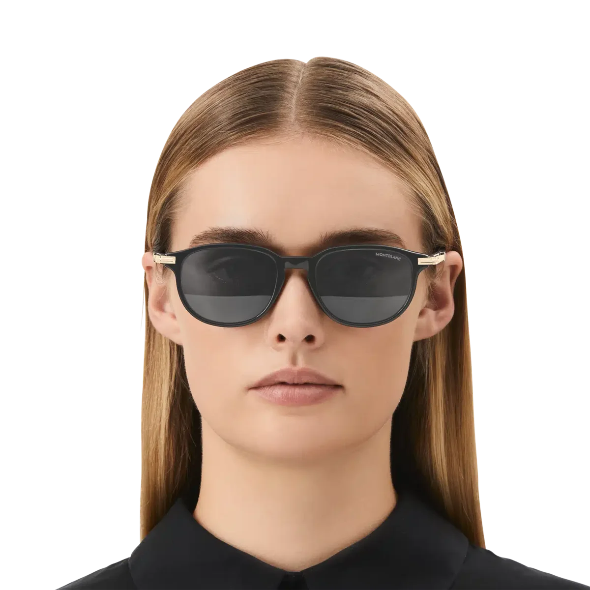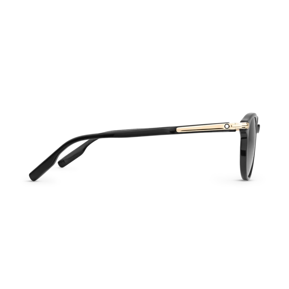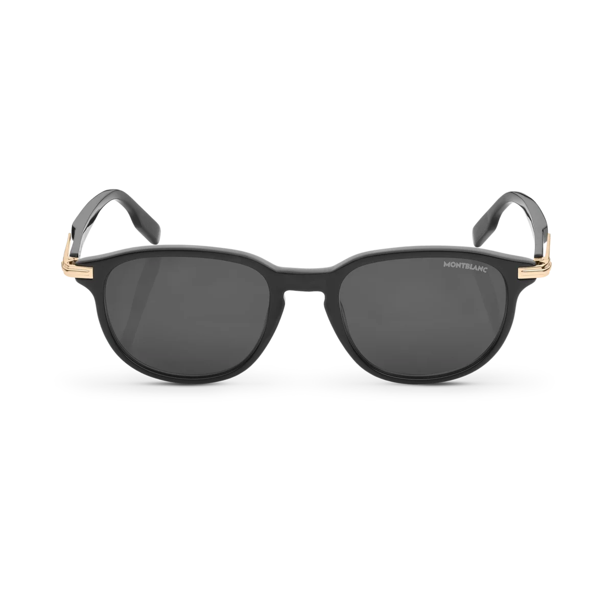 Diese quadratische Sonnenbrille hat einen schwarzen Acetatrahmen und schwarze Gläser. Das goldfarbene Clip-Detail ist das Kernelement des Bügel-Designs. Es ist eine Hommage an ein wichtiges Element des Meisterstück-Schreibgeräts, mit dem der Rahmen auch an Taschen befestigt werden kann. Das schneebedeckte Montblanc Emblem ist in das Clip-Detail am Bügel eingearbeitet und das Montblanc Logo ist auf die linke Linse gelasert.