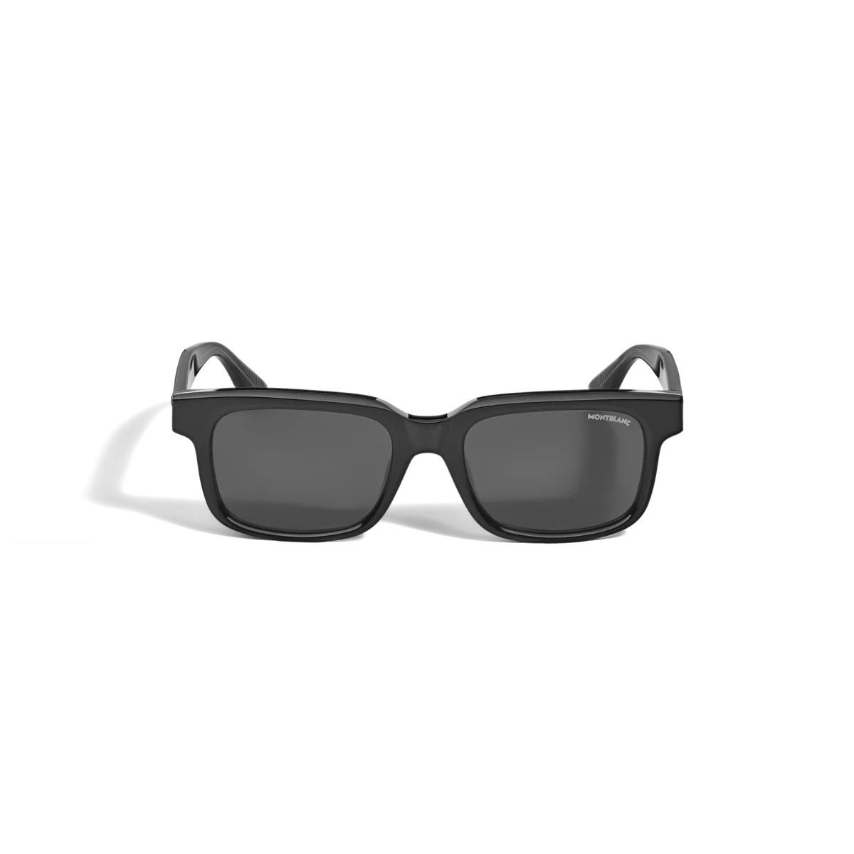 Diese Sonnenbrille im eckigen Stil hat einen schwarzen Acetatrahmen und graue Gläser. Die Nieten auf der Vorderseite sind mit einem Schneekappen-Detail verziert, und das Montblanc Extreme 3.0-Muster ist in das Design der Innenseite der Bügel integriert. Das Montblanc Emblem ist in das Bügeldesign integriert. Das Montblanc Logo ist auf das linke Glas gelasert und die Innenseite der Bügelenden ist mit einem rutschfesten Muster versehen, um den Tragekomfort zu erhöhen. Ident-Nr. MB135578