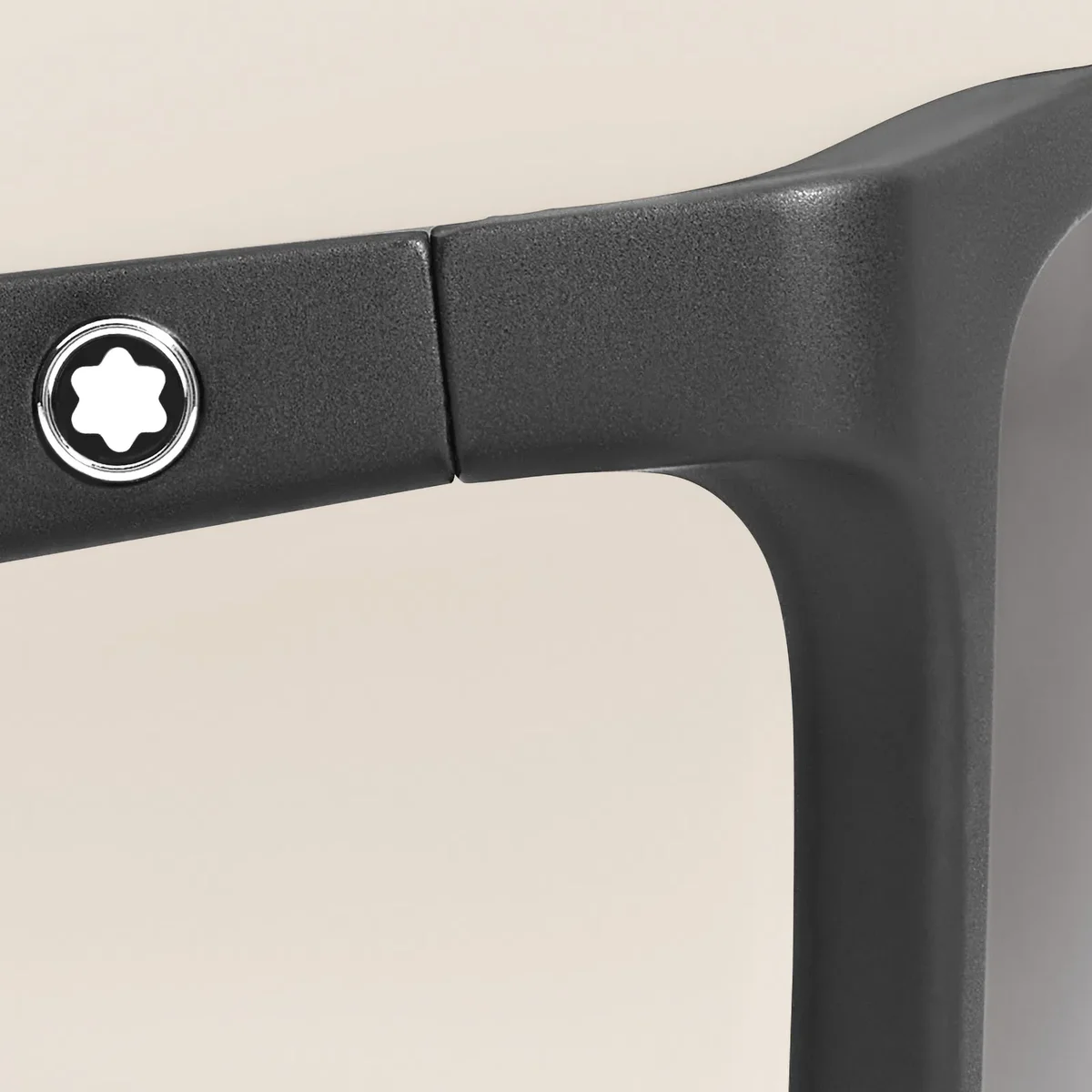 Diese Sonnenbrille im rechteckigen Stil hat einen schwarz gefärbten Spritzgussrahmen und graue polarisierte Gläser. Das Montblanc Emblem ist in das Bügel-Design integriert und die Bügelenden sind mit Gummikappen mit dem Montblanc Extreme 3.0-Muster versehen, um einen sportlichen Look zu vermitteln. Das Montblanc-Logo ist auf das linke Glas der Sonnenbrille gelasert.