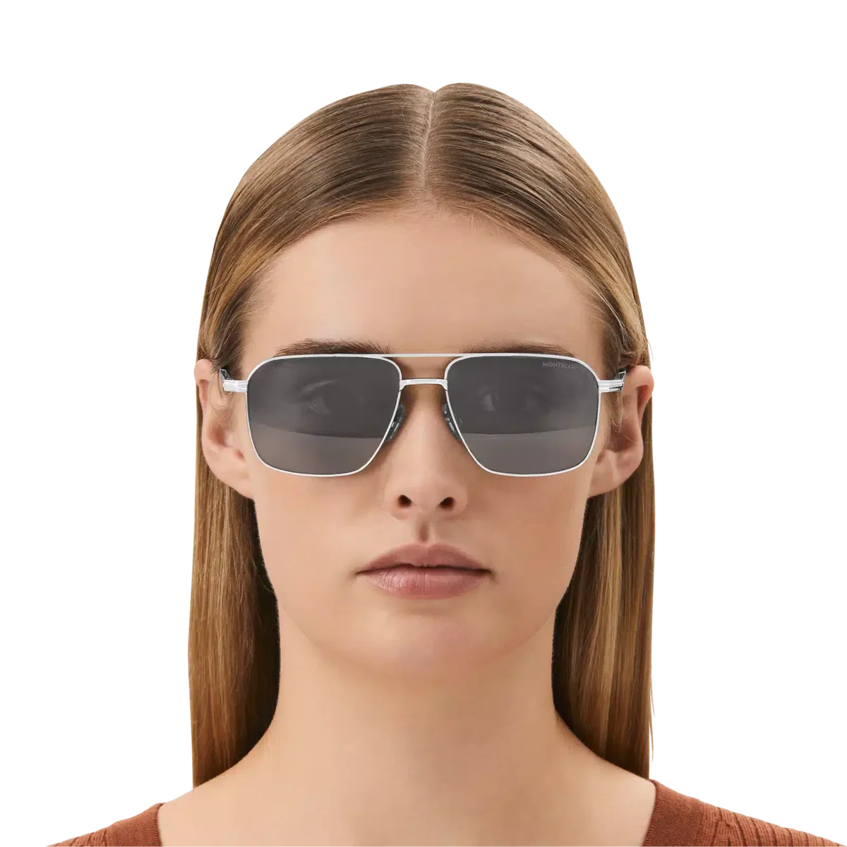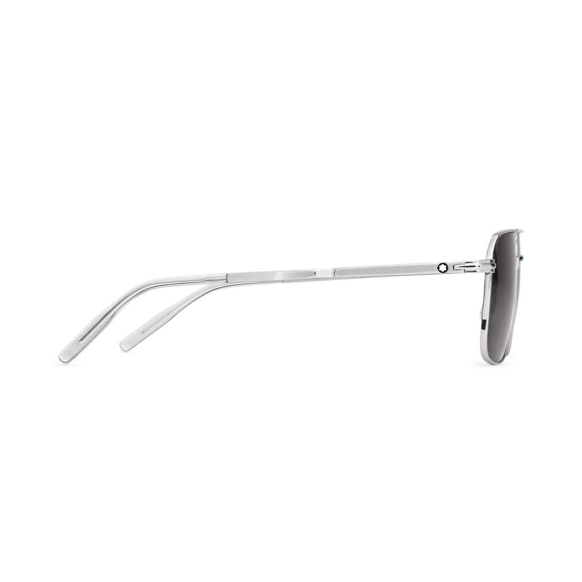 Diese Sonnenbrille im rechteckigen Stil hat einen silberfarbenen Metallrahmen und graue Gläser. Sie verfügt über einen doppelten Metallsteg auf der Vorderseite. Das silberfarbene Clip-Detail ist das Kernelement des Bügel-Designs. Es ist eine Hommage an ein wichtiges Element des Meisterstück-Schreibgeräts, mit dem der Rahmen auch an Taschen befestigt werden kann. Das schneebedeckte Montblanc Emblem ist in das Clip-Detail des Bügels eingearbeitet und das Montblanc Logo ist auf die linke Linse gelasert. Ident-Nr. MB131313