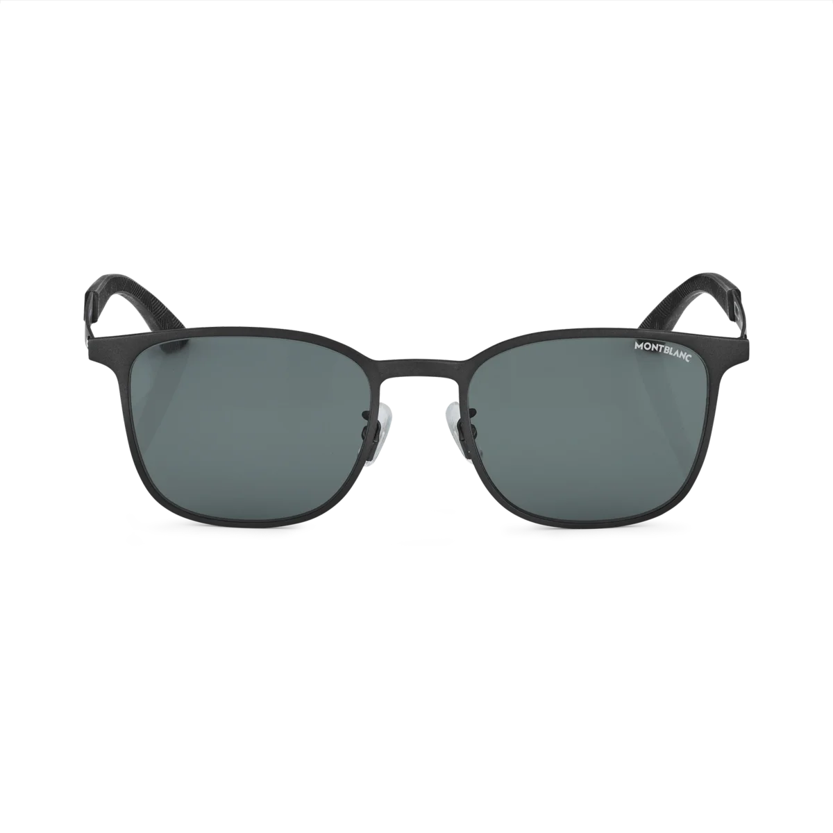 Diese quadratische Sonnenbrille verfügt über einen schwarzen Metallrahmen und graue Gläser. Das Montblanc Emblem ist in das Bügeldesign integriert, die Gummikappen sind mit dem Montblanc Extreme 3.0-Muster versehen und verleihen der Brille einen sportlichen Look. Das Montblanc Logo ist auf das linke Glas der Sonnenbrille gelasert.