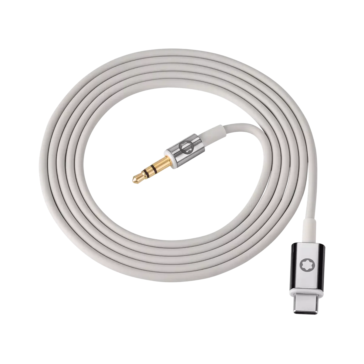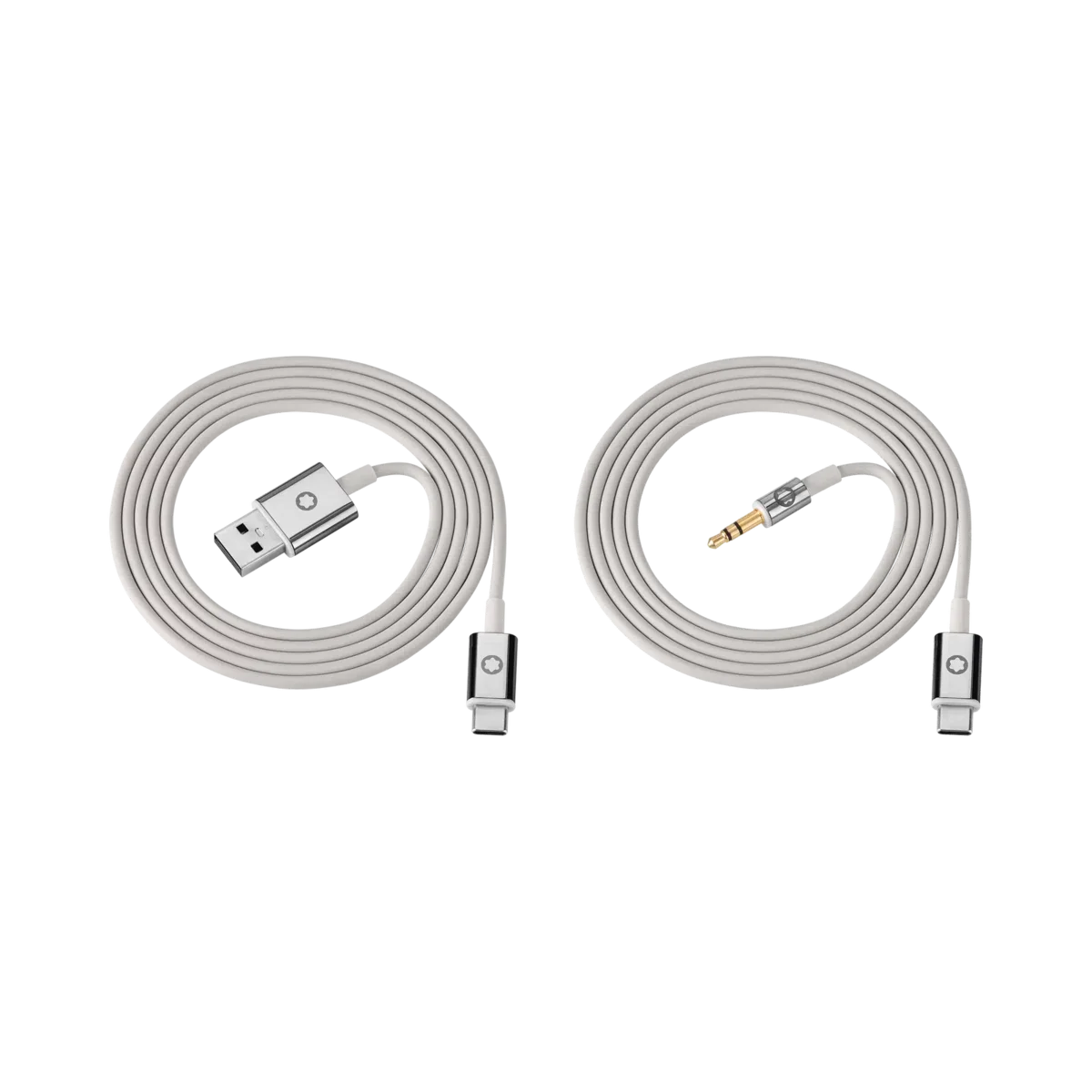 Zusätzliches Kabelset für Ihre Montblanc MB 01 Kopfhörer mit einem grauen USB-C-Ladekabel und einem grauen Audiokabel.
