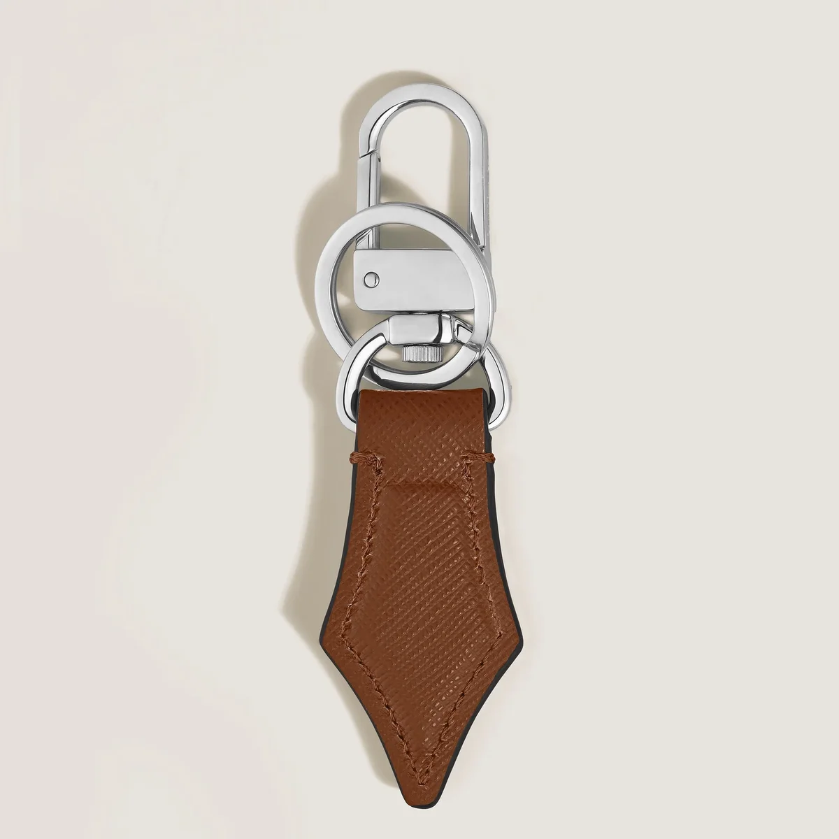 Der Montblanc Schlüsselanhänger aus geprägtem fauvefarbenem Leder ist eine subtile Hommage an die Kunst des Schreibens. Seine von einer Füllfederhalterspitze inspirierte Form spiegelt mit raffinierten Details das Erbe von Montblanc wider. Er ist auf Praktikabilität ausgelegt und verfügt über einen robusten Ring für mehrere Schlüssel sowie einen leicht zu befestigenden Haken zum Anbringen an Taschen. Ident-Nr. MB220359