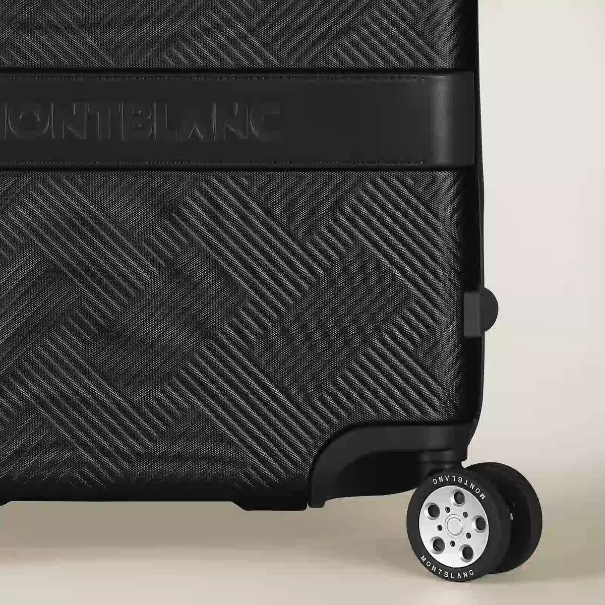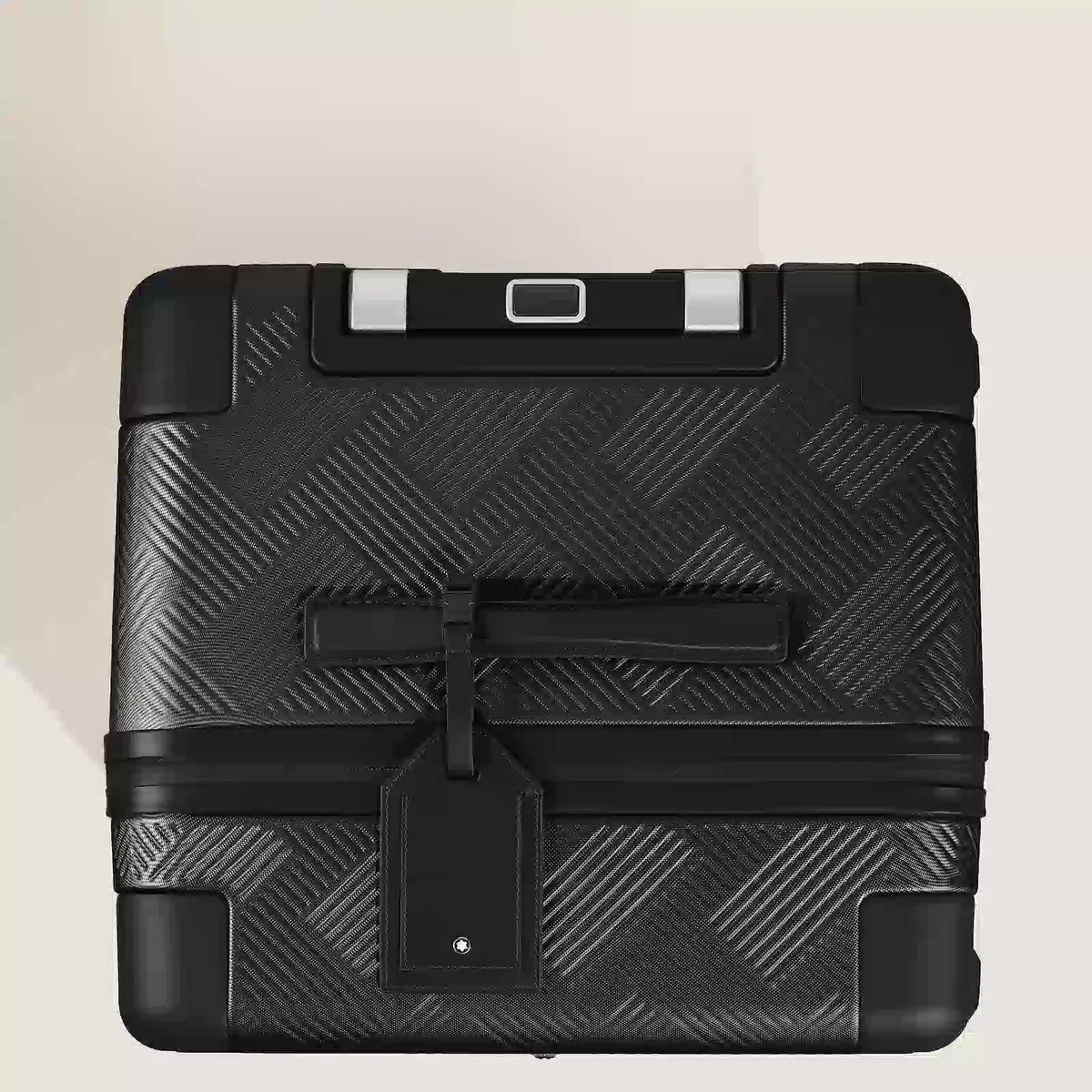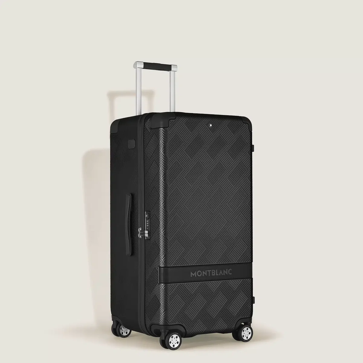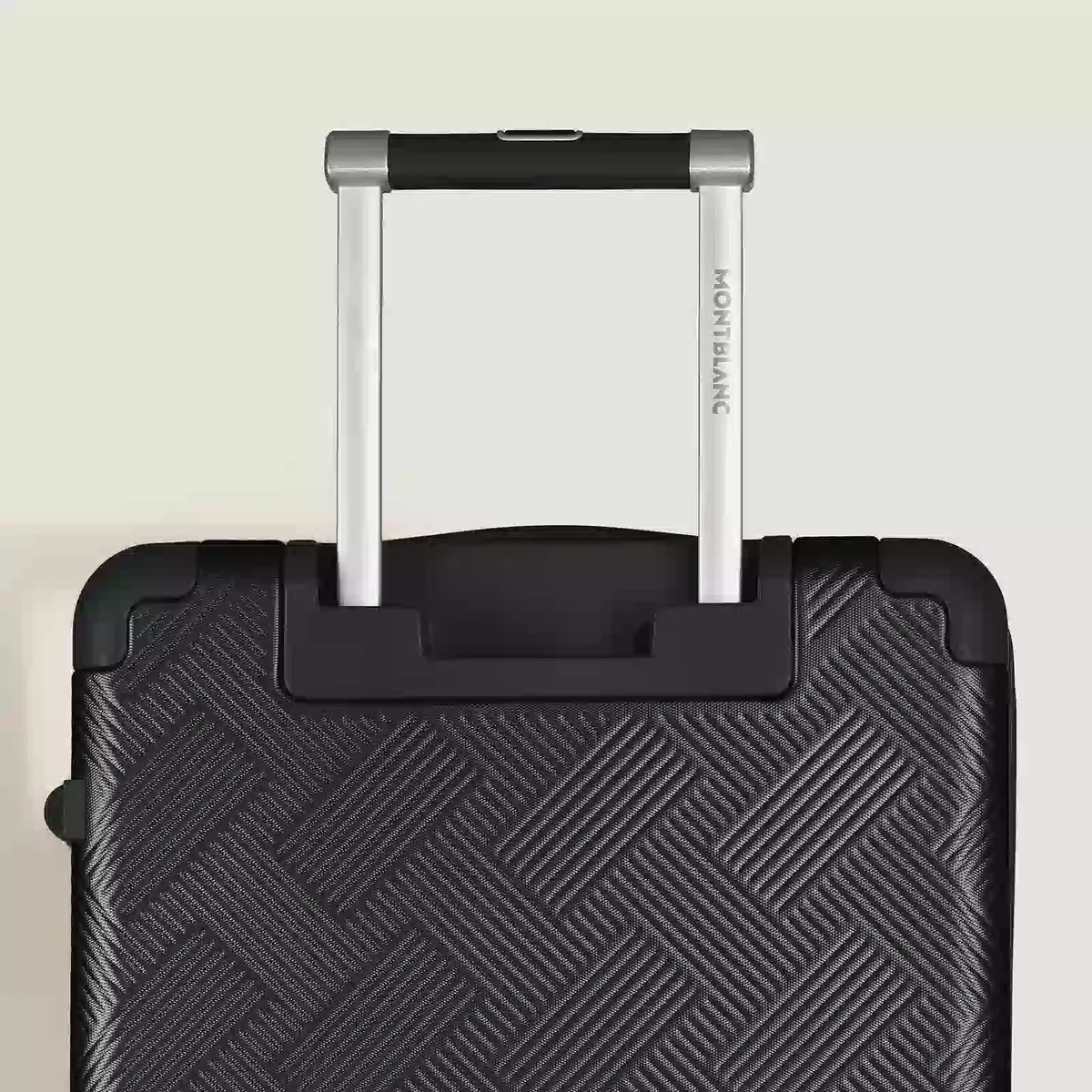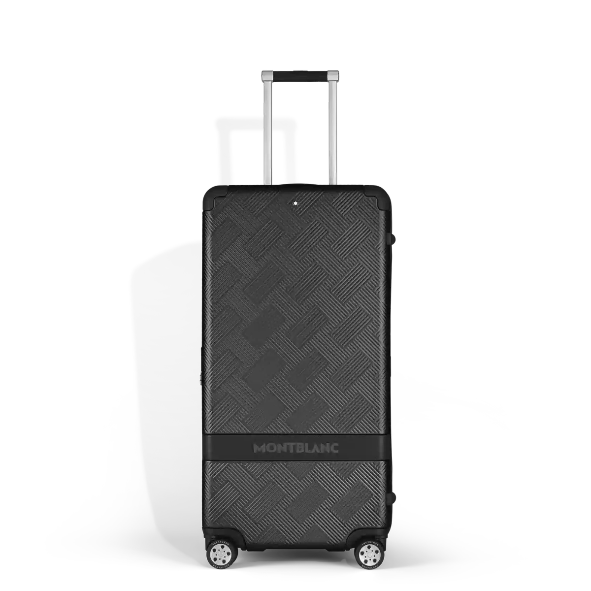 Entdecken Sie die Trolley-Serie #MY4810 und ihre neueste Ergänzung: einen geräumigen Koffer in neuer Form, gefertigt aus leichtem schwarzem Polycarbonat, bedruckt mit einem vergrößerten Extreme 3.0-Motiv für einen unverwechselbaren Look und akzentuiert mit eleganten schwarzen Lederbesätzen. Gleiten Sie mühelos mit 4 leise laufenden Kugellagern, stabilen, mehrfach verlängerbaren Griffstangen mit Multi-Stop-System und komfortablen Ledergriffen. Im Inneren erwartet Sie ein geräumiges Fach für Kleidung mit verstellbarem Gurt auf der einen Seite und einem schwarzen Netz auf der anderen Seite, einem Reißverschluss und einem Visitenkartenfach. Machen Sie Ihren Trolley mit einem Kofferanhänger und einem Personalisierungsanhänger in drei Farben zu Ihrem ganz persönlichen Unikat.