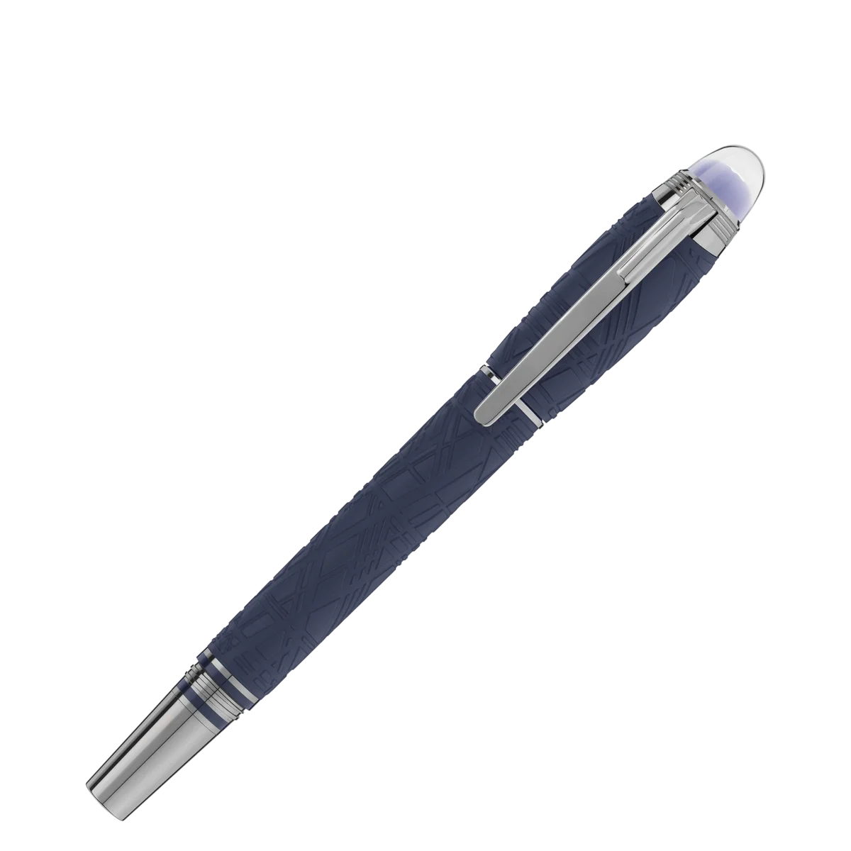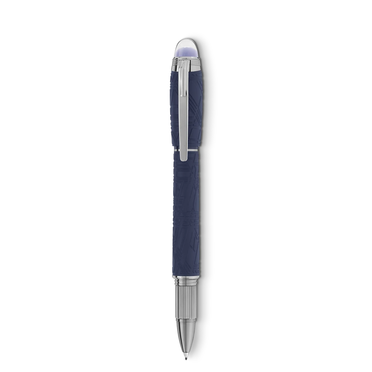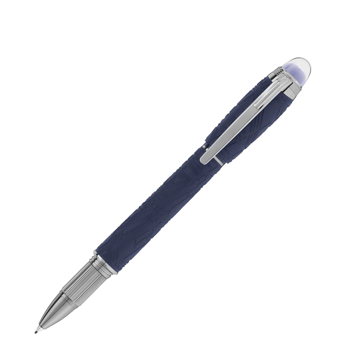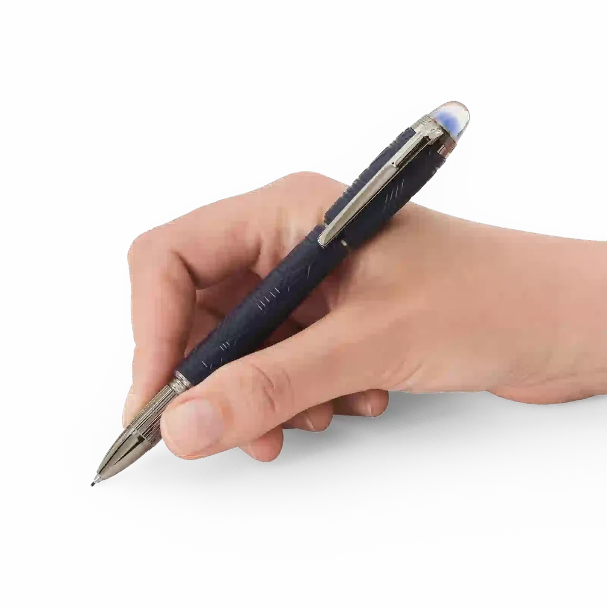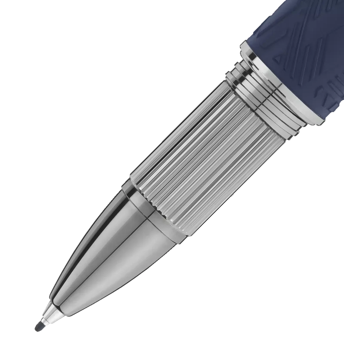 StarWalker SpaceBlue blickt über den Planeten Erde hinaus und wendet sich den Sternen und der Galaxie zu. Diese neue StarWalker-Kollektion verleiht der Kappe und dem Schaft aus Harz einen neuen Look mit einem Design, das an die komplexen Strukturen des Widmanstätten-Musters erinnert, einer der faszinierendsten Schöpfungen der Natur. Alle Metallteile sind mit dunklem Ruthenium beschichtet, begleitet von einem tiefen Weltraumblau für das matte Edelharz, das an die Farbtöne eines Sternenhimmels erinnert. Darüber hinaus ist die Kuppel auf der Kappe, über der das Montblanc-Emblem schwebt, in einem tiefen Weltraumblau gehalten.