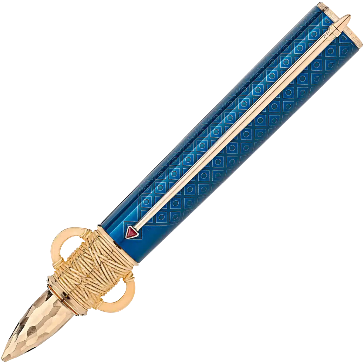 Moctezuma I. wurde 1440 zum Herrscher des großen Aztekenreichs gekrönt und leitete damit das goldene Zeitalter der Azteken ein. Während seiner Herrschaft prägte er das Bild des aztekischen Staates, wie wir es heute kennen – ein Staat, reich an Kultur und Mythologie. Die Hauptstadt Tenochtitlán, das heutige Mexiko-Stadt, blühte unter seiner Herrschaft auf. Der Montblanc Patron of Art Homage to Moctezuma I Limited Edition 4810 mit charakteristischen goldbeschichteten Beschlägen ist diesem obersten Herrscher einer der außergewöhnlichsten Kulturen der Weltgeschichte gewidmet. Das Gesamtdesign ist von einem Atlatl inspiriert, einem aztekischen Speerwerfer. Die Form des Kegels, veredelt mit einer Hammerschlag-Oberfläche, basiert auf einem aztekischen Opfermesser mit einer Obsidianklinge. Die Lackfarben – Petrol und Karminrot – sind von den Farben des königlichen Umhangs inspiriert. Die beiden Hieroglyphen, die die Kappe zieren, symbolisieren die Regierungsjahre von Moctezuma I. Die handgefertigte Feder aus massivem 750er Gold ist mit einer feinen Gravur verziert, die von der aztekischen Glyphe für die Stadt Tenochtitlán inspiriert ist: ein dreibeiniger Kaktus mit einer königlichen Diadem und zwei Schriftrollen.
