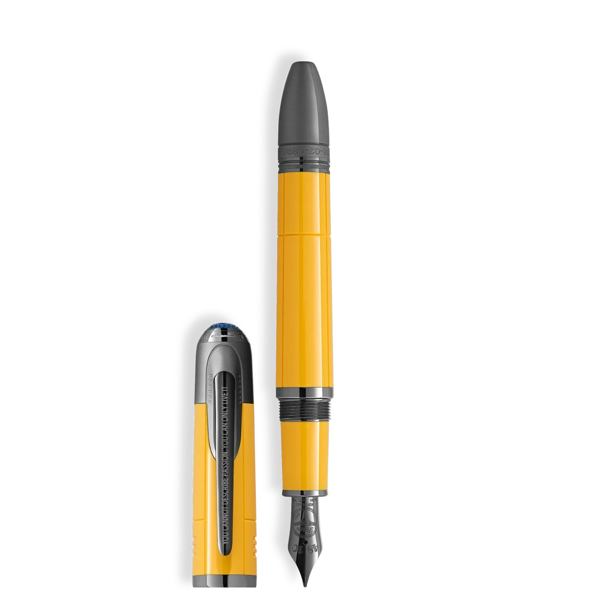 Der Name Ferrari steht für ästhetisches Design, leistungsstarke Motoren, nahezu unendliche technische Innovation und einen der einflussreichsten Männer der Automobilgeschichte. Mit seiner enormen Weitsicht und seiner unbändigen Leidenschaft für den Motorsport führte Enzo Ferrari sein Unternehmen zu beispiellosem Ansehen und schuf eine Legende, die bis heute fortlebt. Montblanc hat dem Mann und seiner Leidenschaft für den Rennsport die Montblanc Great Characters Enzo Ferrari Special Edition gewidmet. Inspiriert sowohl vom Wappen von Enzo Ferraris Heimatstadt Modena als auch von der emblematischen Farbe des Scuderia-Logos, ehrt diese Edition Ferraris zweite Seele – die Farbe Gelb. Das Geburtsdatum von Enzo Ferrari und das Datum seines ersten Rennsieges sind auf dem Konus eingraviert, während seine Unterschrift und der Name der Werkstatt seines Vaters, „Officina Meccanica Alfredo Ferrari“, in Anlehnung an den Geburtsort von Enzo Ferrari auf der Kappe eingraviert sind. Gekrönt wird der Kegel vom Montblanc Emblem aus blauem Edelharz – als weitere Hommage an das Wappen von Modena – und umgeben von aufwendigen Metallarbeiten, die an den Kühlergrill eines Oldtimers erinnern. Enzo Ferraris erster Sieg auf dem Circuito del Savio war auch der Anlass für die Einführung des heute berühmten Ferrari-Logos. Unter den vielen Zuschauern, die an diesem Tag Enzo Ferraris kühne Fahrweise bewunderten, befand sich auch die Familie des Spitzenpiloten Francesco Baracca, der während des Ersten Weltkriegs in derselben Einheit wie Enzos Bruder Dino gedient hatte. Francesco Baraccas Mutter, Gräfin Paolina Biancoli, schlug Enzo Ferrari vor, das Emblem eines tänzelnden, ungezügelten Pferdes aus dem Flugzeug ihres Sohnes als Glücksbringer auf seinen Rennwagen anzubringen. Die Assoziation des Pferdes mit dem Mut und dem Siegeswillen eines Nationalhelden machte es zu einem idealen Symbol für Enzo. Neun Jahre später wurde das Cavallino Rampante erstmals auf gelbem Hintergrund zur Verzierung eines Autos verwendet. Es war 1932 beim 24-Stunden-Rennen von Spa, und das Team der Scuderia Ferrari belegte mit zwei Autos, die das springende Pferd trugen, den ersten und zweiten Platz. Das Cavallino Rampante ist zusammen mit den Worten der Gräfin „Le porterà fortuna” („Es wird Ihnen Glück bringen”) auf die Kappe der Montblanc Great Characters Enzo Ferrari Special Edition graviert. Das erste von Ferrari gebaute Auto, der 125 S mit zwölf Zylindern, verließ am 12. März 1947 das Werk in Maranello. Zwölf gravierte Linien symbolisieren die zwölf Zylinder. Enzo Ferraris Motto „Leidenschaft kann man nicht beschreiben, man kann sie nur leben“ ziert den rutheniumbeschichteten Clip.Als Hommage an Enzos Erfolg ist die massive Au 585-Goldfeder mit Rutheniumbeschichtung mit dem Wort „Pilota“ (einer seiner Spitznamen) und dem Lenkrad des 250 GTO, einem der berühmtesten Rennwagen der Welt, geprägt.