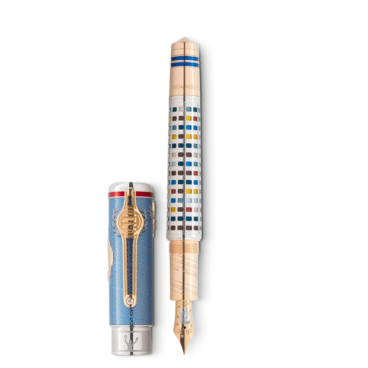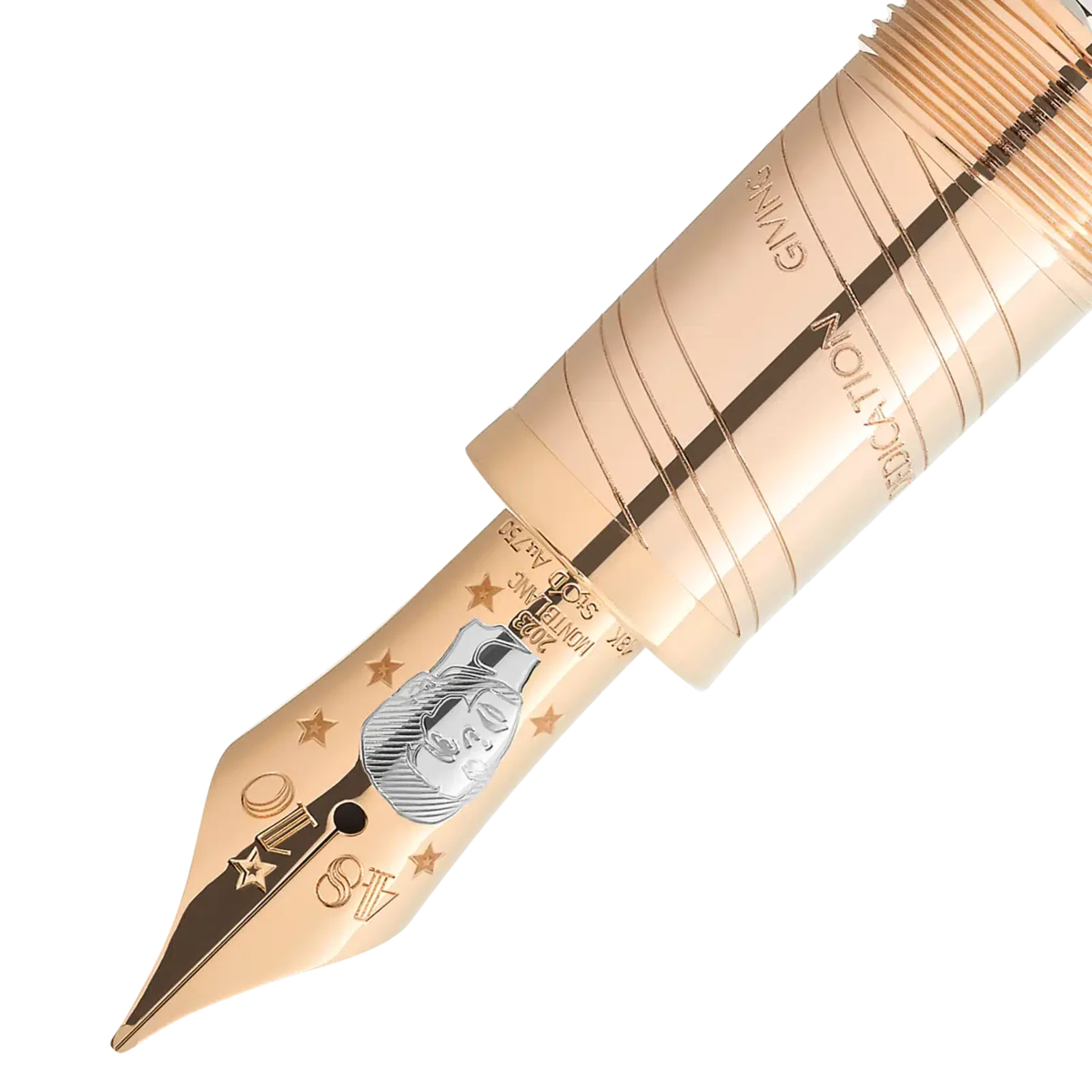 Nur wenige Sportler werden so gefeiert und geehrt wie der dreimalige Weltmeister im Schwergewicht Muhammad Ali, dessen legendäre Momente im Sport und im Kampf für Bürgerrechte ihn zu einem der einflussreichsten Sportler und Menschenfreunde des 20. Als Sportler erschütterte Ali die Welt mit seiner Kraft, seinem Können und seiner Persönlichkeit und wurde mit nur 22 Jahren Weltmeister im Schwergewicht. Seine größten Erfolge erzielte er jedoch durch sein humanitäres Engagement.Die Kappe hat die Form eines Boxsacks mit einer Guilloche-Lackierung und handgravierten Einlagen aus massivem 750er Gold, die einem Boxhandschuh und einer Friedenstaube nachempfunden sind. Auf der Vorderseite sind Alis sechs Grundprinzipien eingraviert. Zu Ehren seines dritten Weltmeistertitels in seiner Boxkarriere ist das Montblanc-Emblem auf der Kappe mit der Zahl 3 aus massivem 750er Gold verziert. Muhammad Alis Siegespose ist neben der Inschrift „TKO-W-7 (15)” (Technischer K.o. in der 7. (von 15) Runde) auf dem goldbeschichteten Kappenring eingraviert. Der Siegesgürtel, den Muhammad Ali mit Stolz trug, inspirierte das Design des skelettierten Clips, der mit „ALI” beschriftet ist.Der Schaft ist vom „Muhammad Ali Center” in Louisville, Kentucky, inspiriert und spiegelt die farbigen Fenster des Gebäudes wider. Der Konus besteht aus massivem 750er Gold mit spezieller Gravur und Lackeinlagen und trägt die Inschrift „NEW ORLEANS 1978 NEW YORK 1998” – eine Anspielung auf wichtige Daten: den Gewinn seines dritten Weltmeistertitels sowie das Jahr, in dem er zum Friedensbotschafter der Vereinten Nationen ernannt wurde. Die limitierte Auflage von 98 Füllfederhaltern ist eine Anspielung auf das Jahr 1998. Ident-Nr. MB129355 Physisches Gewicht 107,01 g Abmessungen 148 mm * 18,5 mm * 18,5 mm