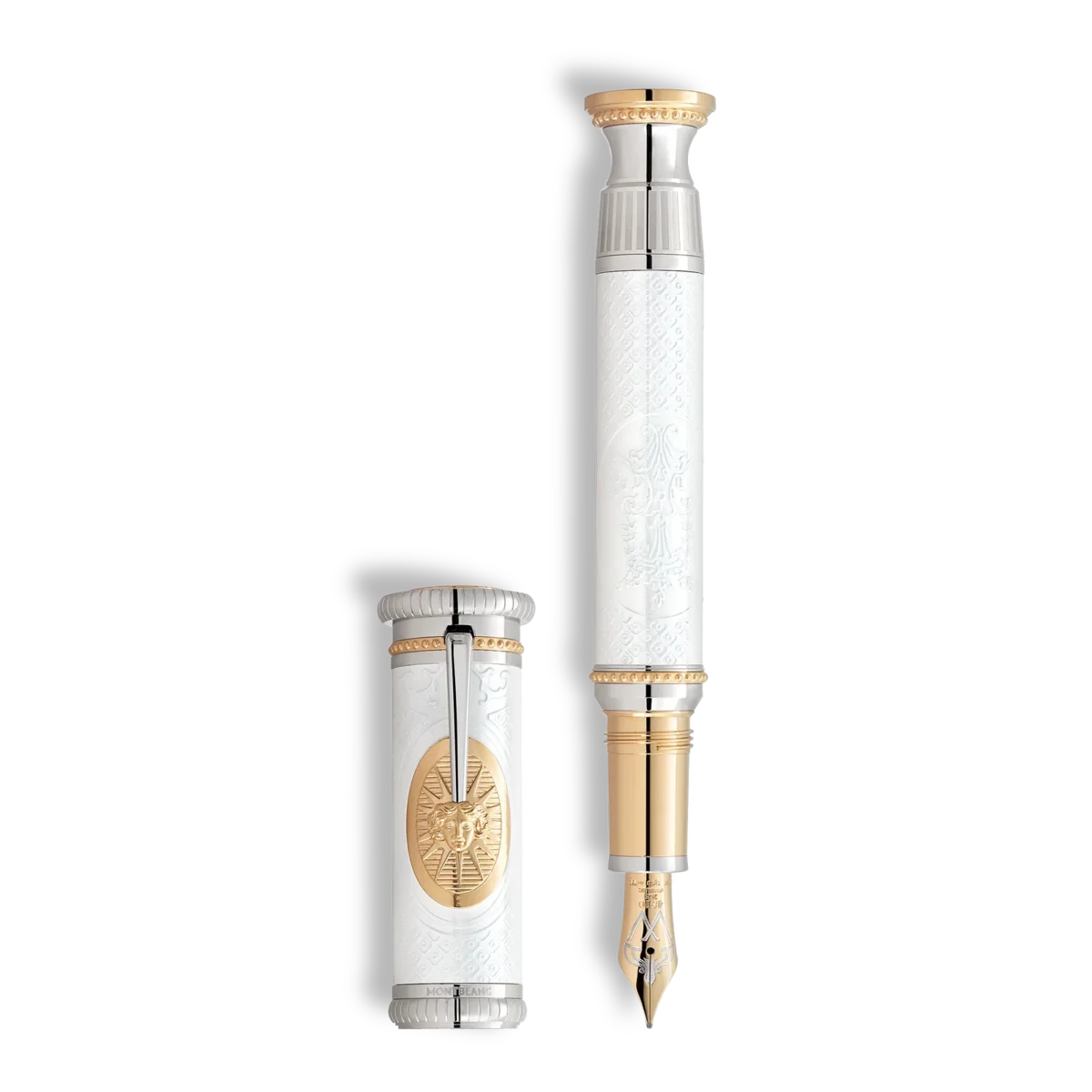Mit der Kollektion „A Journey through Château de Versailles” unternimmt Montblanc eine Reise durch dieses barocke Meisterwerk und würdigt damit das Weltkulturerbe Versailles. Die Limited Edition 479 würdigt insbesondere das prächtige Interieur und die luxuriösen privaten königlichen Gemächer. Ludwig XIV. zog sich gerne in seine privaten Gemächer zurück, um den Blick auf den zentralen Marmorhof zu genießen. Unter Ludwig XV. wurden diese Gemächer umgestaltet und der prächtige Königliche Eckraum geschaffen, der heute für einige der exquisitesten Rocaille-Arbeiten im Palast berühmt ist. Entsprechend dem exquisiten Geschmack des Monarchen kontrastiert weißer Stuck mit extravaganten Vergoldungen und Rokoko-Elementen und erzeugt so einen geradezu magischen Effekt im funkelnden Licht der Kristallkronleuchter. Weiß und Gold – diese königliche Farbgebung hat auch Eingang in die Limited Edition 479 gefunden: Weißer, transluzenter Lack bildet einen wunderschönen Kontrast zu den massiven Beschlägen aus 750er Gelbgold, die teilweise mit Platin beschichtet sind. Das meisterhaft ausgeführte feine Guilloche-Muster unter dem Lack auf der Kappe und dem Schaft spiegelt die Rokoko-Ornamente des Saals wunderschön wider. Die führenden Tischler Frankreichs schufen hochelegante Möbel für das prestigeträchtige Interieur, jedes Stück kunstvoll verziert mit Vergoldungen und Intarsien aus Perlmutt, vielfarbigem Marmor und Edelsteinen aus aller Welt. Als Stücke, die für das Anwesen in Versailles geschaffen wurden, tragen die Möbel die Buchstaben „VV“ – ebenso wie die handgefertigte Feder aus massivem 750er Gelbgold. Sie ist mit einer feinen Gravur verziert, die genau dasselbe Zeichen zusammen mit der Königskrone zeigt. Zu Ehren des „Sonnenkönigs“, wie der Monarch später genannt wurde, findet sich das Bild der Sonne im gesamten Palast in zahlreichen Darstellungen und allegorischen Anspielungen auf den antiken griechischen Gott wieder. Auch bei der Limited Edition 479 steht die Sonne im Mittelpunkt. Der Clip ist ein Meisterwerk der Handwerkskunst und endet in einer aufwendigen Darstellung des Kopfes von Apollo, umgeben von Sonnenstrahlen und eingefasst in eine Platte aus massivem 750er Gelbgold. Die Kappe ist mit dem Montblanc-Emblem aus glänzendem Perlmutt gekrönt, das in massives 750er Gelbgold eingelassen ist.Da Geheimhaltung ein zentrales Element der Macht am Hof war, verwendete der Sonnenkönig spezielle Verschlüsselungssysteme aus Buchstaben und Zahlen, die als „Grand Chiffre” und „Petit Chiffre” bekannt waren. Sie wahrten die Vertraulichkeit seiner militärischen und diplomatischen Kommunikation und verliehen ihm gleichzeitig eine Aura der Exklusivität und des Geheimnisvollen. Nach diesem System stand die Zahl 479, die Limitierung dieser Edition, für nichts Geringeres als den König selbst: „Le Roy”.