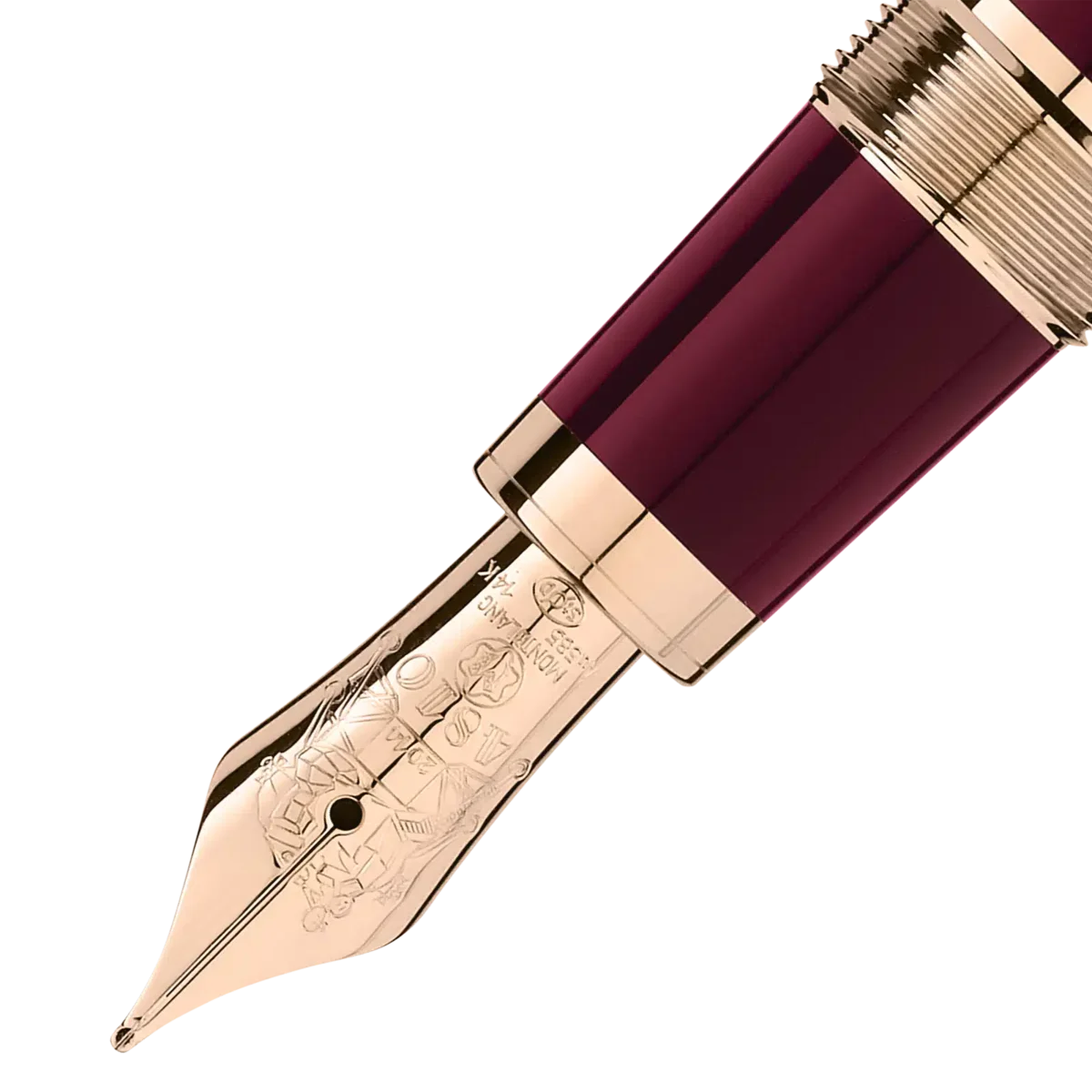 Die Sonderedition John F. Kennedy erinnert an eine der am meisten verehrten Persönlichkeiten der modernen Geschichte und nimmt mit subtilen Designdetails symbolisch Bezug auf das Leben von J.F. Kennedy. Das burgunderfarbene Edelharz verweist auf Kennedys berühmten Ivy-League-Stil und ist von seiner Zeit an der Harvard University inspiriert. Seine Initialen „JFK“ sind auf dem charakteristischen goldbeschichteten Clip eingraviert, und die drei Kappenringe, die für Kennedys drei Brüder stehen, sind ebenfalls mit charakteristischem Gold beschichtet. Als Hommage an die nationalen Hoffnungen und Träume, die in Kennedys Lieblingsprojekt, dem Apollo-Raumfahrtprogramm, verkörpert sind, ist die handgefertigte Feder aus 585er/14 K Gold mit dem Mondmodul geprägt, das 1969 auf dem Mond landete. Die Sonderedition wird durch das Montblanc-Emblem aus kostbarem Harz gekrönt. Mit charakteristischem Gold und/oder charakteristischer Goldbeschichtung. Montblanc beschreibt den edlen Farbton von Gelbgold, der zu einem geschätzten Farbton für die Schreibgeräte des Hauses geworden ist.
