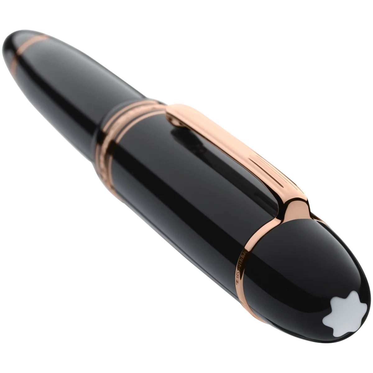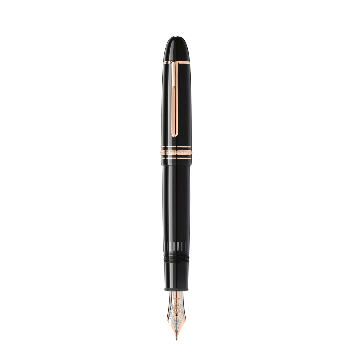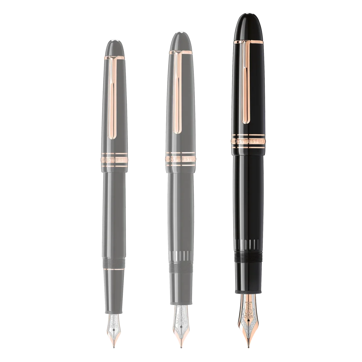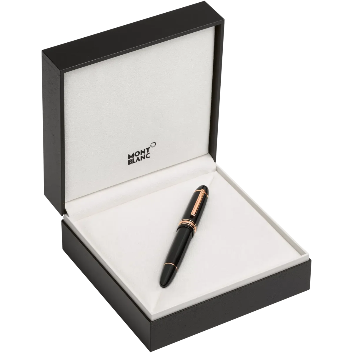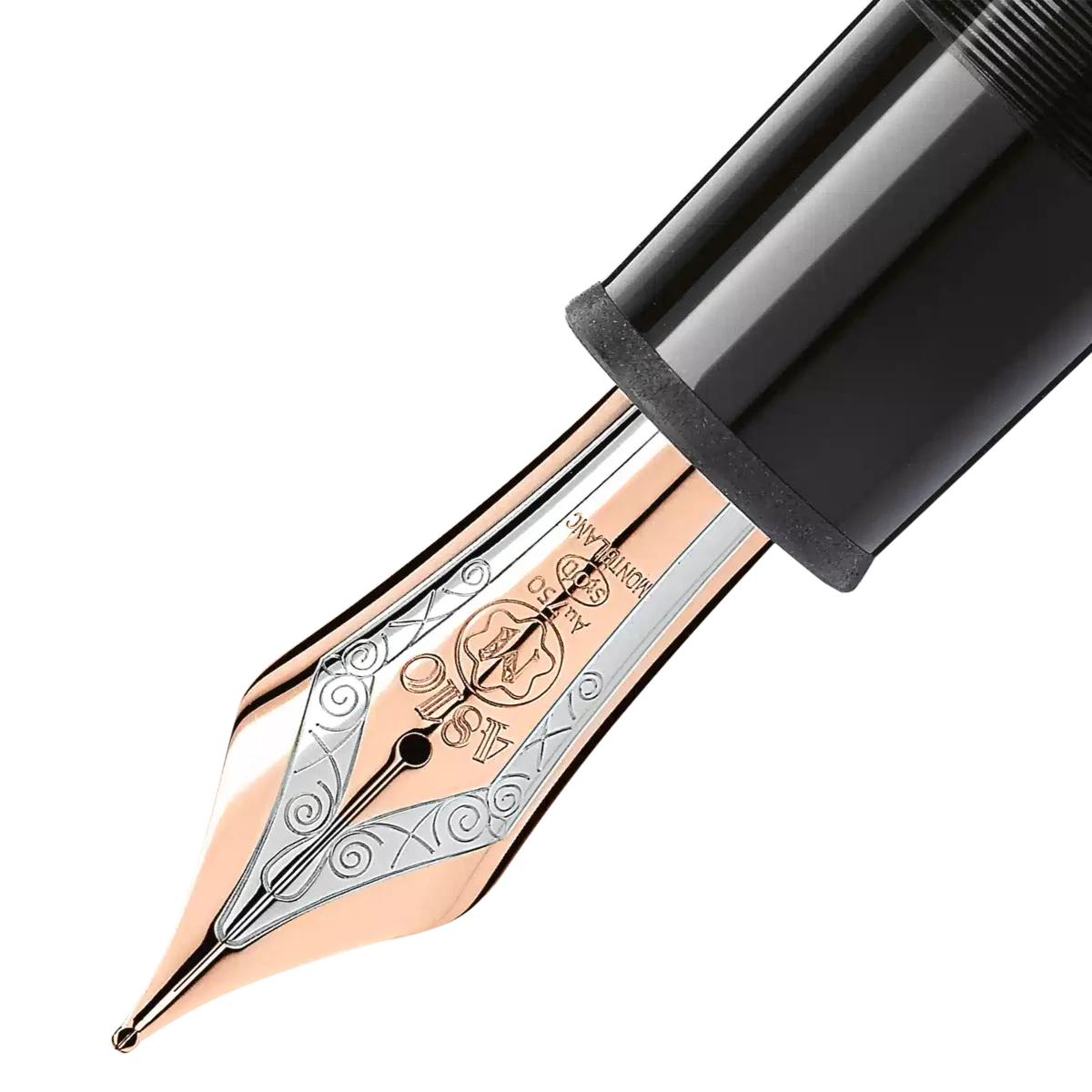 Die Montblanc Meisterstück 149 Roségold-beschichtete Kollektion ist ein Design, das Geschichte schreibt. Der 1924 eingeführte Meisterstück, dessen Name „Meisterwerk” bedeutet, ist zum Symbol für hochwertige Luxus-Schreibgeräte geworden. Die Kappe und der Schaft sind aus schwarzem Edelharz gefertigt und mit dem ikonischen weißen Montblanc-Emblem auf der Kappenspitze verziert. Der Füllfederhalter ist mit einer handgefertigten Feder aus massivem 750er Gold verziert, die zweifarbig mit Rhodium und Roségold beschichtet ist.