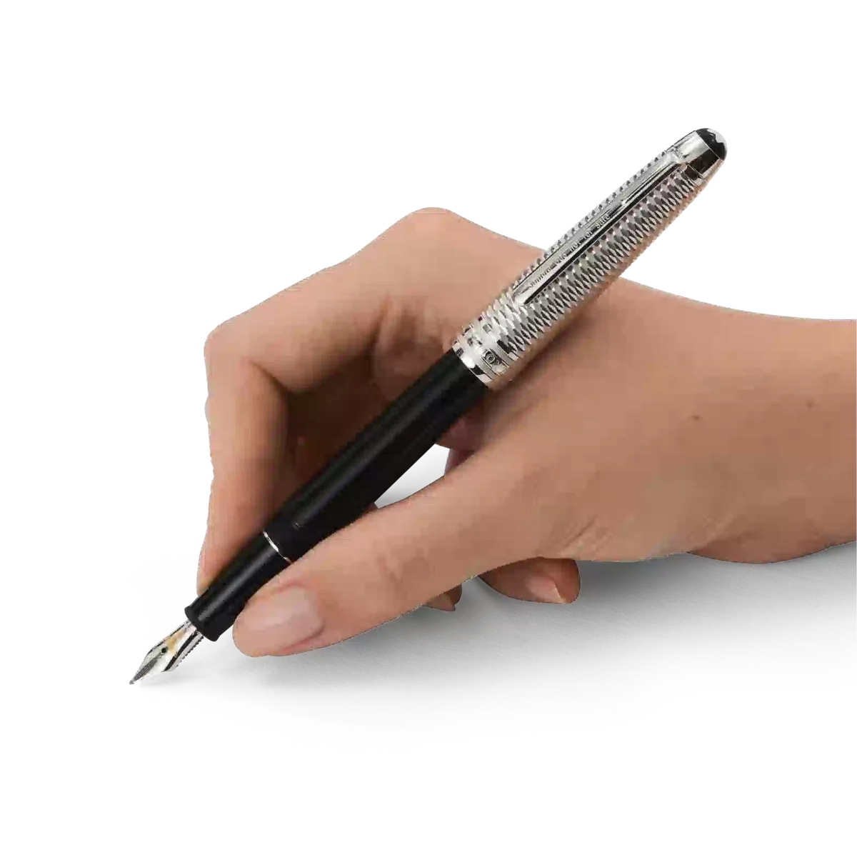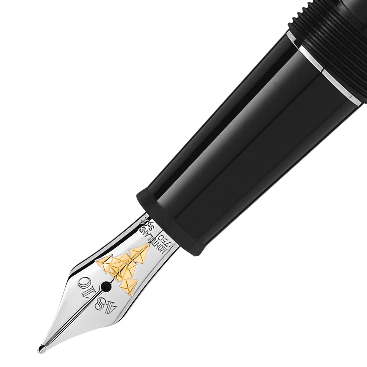 Der Meisterstück Solitaire Geometric Dimension entstand aus dem Wunsch heraus, das klassische Design von Montblanc mit einzigartigen Materialien zu verbinden. Dieses Schreibgerät aus schwarzem Edelharz mit einer Kappe, die mit einem dreidimensionalen geometrischen Muster mit optischem Effekt in einem raffinierten Platin-Ton graviert ist, verfügt über eine zweifarbige Au750-beschichtete Feder mit speziellem Design, einen platinbeschichteten Clip und drei platinbeschichtete Ringe mit dem geprägten Montblanc-Markennamen. Veredelt mit dem Montblanc Emblem, spricht es die Individualität jedes Einzelnen an. Ident-Nr. MB132501 Physikalisches Gewicht 33,498 g Abmessungen 140 mm * 13,7 mm