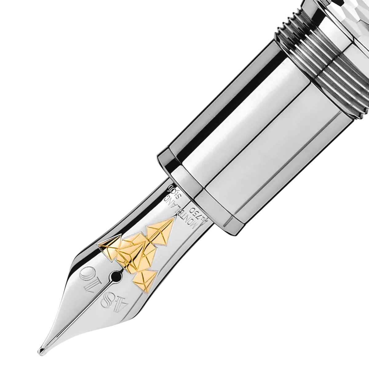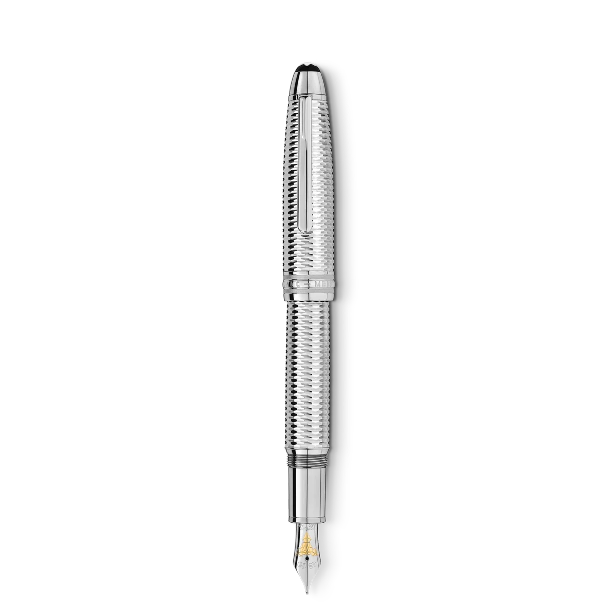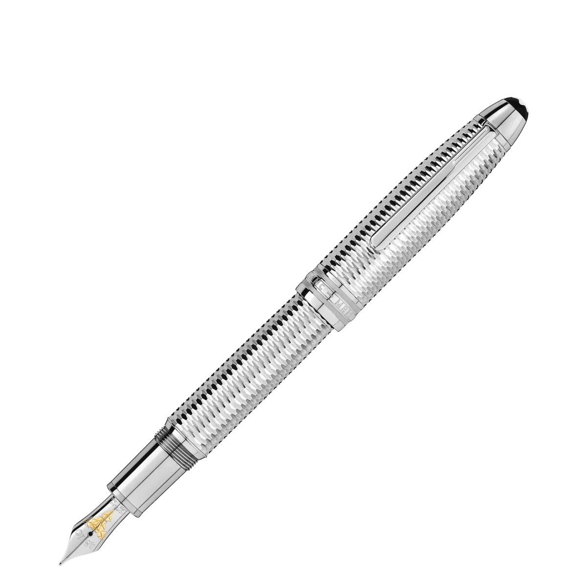 Der Meisterstück Solitaire Geometric Dimension entstand aus dem Wunsch heraus, das klassische Design von Montblanc mit einzigartigen Materialien zu verbinden. Dieses Schreibgerät, das mit einem dreidimensionalen geometrischen Muster mit optischem Effekt in einem raffinierten Platin-Ton graviert ist, verfügt über eine zweifarbige Au585-beschichtete Feder mit speziellem Design, einen platinbeschichteten Clip und drei platinbeschichtete Ringe mit dem geprägten Montblanc-Markennamen. Veredelt mit dem Montblanc Emblem, spricht es die Individualität jedes Einzelnen an.
