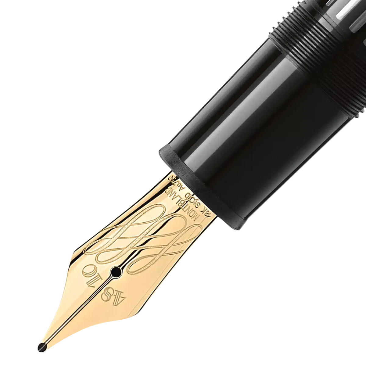 Die Montblanc Meisterstück LeGrand Gold-beschichtete Kollektion ist ein Design, das Geschichte schreibt. Die 1924 eingeführte Meisterstück-Kollektion, deren Name „Meisterwerk” bedeutet, ist zu einem Symbol für hochwertige Luxus-Schreibgeräte geworden. Die Kappe und der Schaft sind aus schwarzem Edelharz gefertigt und mit dem ikonischen weißen Montblanc-Emblem auf der Kappenspitze verziert. Der Füllfederhalter wird von einer innovativen flexiblen Feder gekrönt, die aus massivem 750er Gold handgefertigt und mit einer zarten Dreifach-8 verziert ist – einem Symbol, das von kalligraphischen Bewegungen inspiriert ist. Die flexible Feder ermöglicht eine Vielzahl individueller Schreibstile und Strichstärken, die je nach Druck von extrafein (0,3 mm) bis doppelt breit (1,6 mm) reichen können.