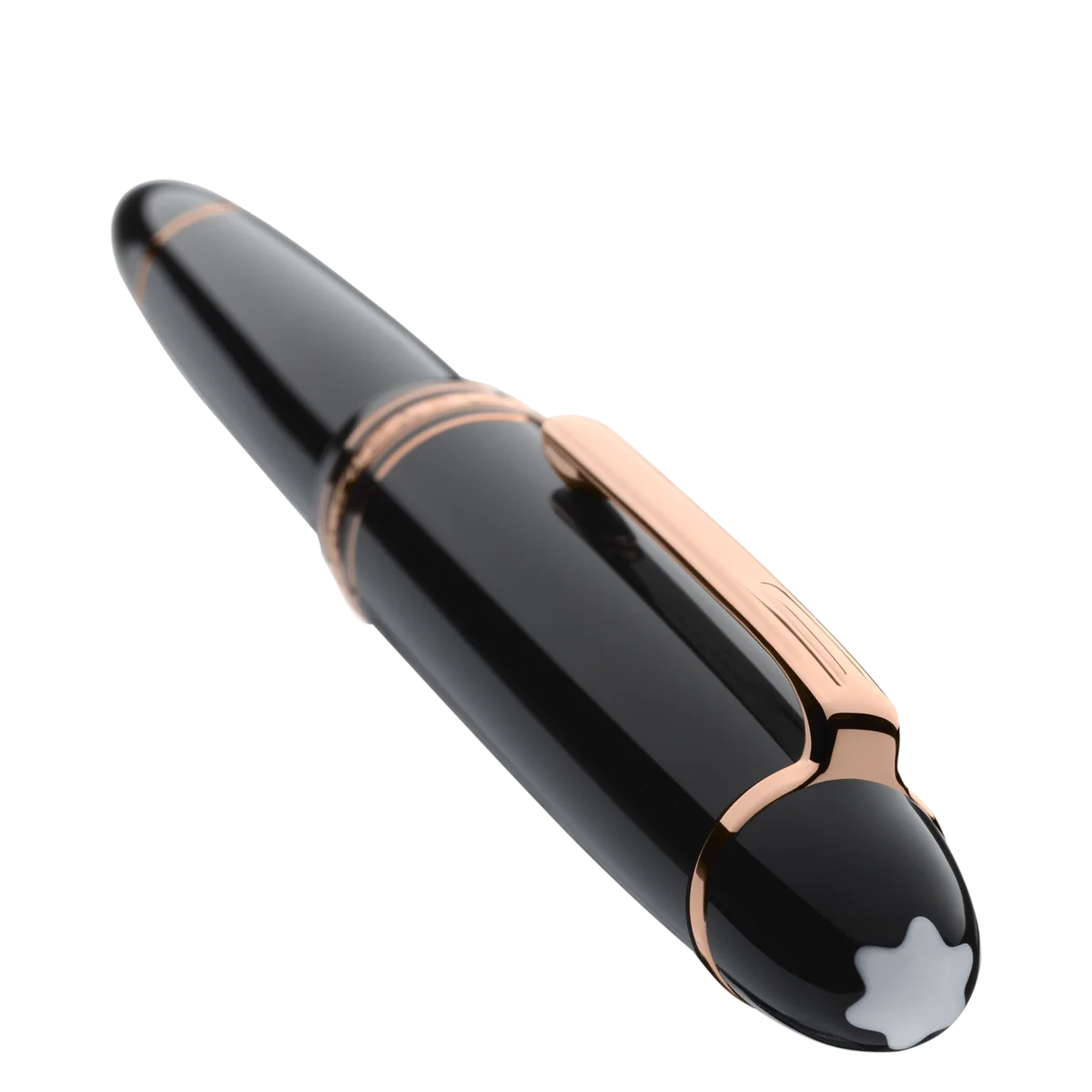 Die Montblanc Meisterstück LeGrand Roségold-beschichtete Kollektion ist ein Design, das Geschichte schreibt. Die 1924 eingeführte Meisterstück-Kollektion, deren Name „Meisterwerk” bedeutet, ist zum Symbol für hochwertige Luxus-Schreibgeräte geworden. Die Kappe und der Schaft sind aus schwarzem Edelharz gefertigt und mit dem ikonischen weißen Montblanc-Emblem auf der Kappenspitze verziert. Der Füllfederhalter ist mit einer handgefertigten Feder aus massivem 585er Gold mit Rhodiumbeschichtung verziert. Ident-Nr. MB132477VG Abmessungen 145,8 mm * 15,5 mm