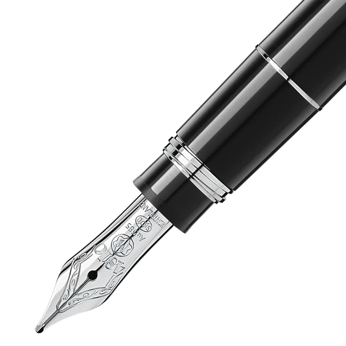 Der Meisterstück Homage to W.A. Mozart aus tiefschwarzem Edelharz mit platinbeschichteten Details, gekrönt vom weißen Stern-Emblem und veredelt mit einer handgefertigten Goldfeder, entwickelt sich zu einer unverwechselbaren Designikone.
