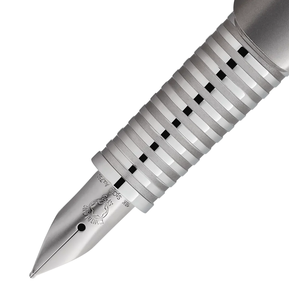 Das Ferrari-Rennteam erzielte 1967 einen erstaunlichen Sieg mit den ersten drei Plätzen beim 24-Stunden-Rennen von Daytona. Dieser spektakuläre Moment wird mit dem neuen Modell Daytona SP3 gefeiert, das Teil der Icona-Reihe von Ferrari ist und eine Hommage an die lange Rennsporttradition des Unternehmens darstellt. Um die Essenz des SP3 einzufangen, hat das Maison in Zusammenarbeit mit dem Ferrari Design Center und dem Chief Design Officer Flavio Manzoni den Stilema SP3 entwickelt, eine beeindruckende Erweiterung des bahnbrechenden Designs. Der Montblanc Ferrari Stilema SP3 bringt die fließende Form des Autos durch die Verwendung eines einzigen Materials für die Kappe und den Schaft zum Ausdruck: leichtes Titan, das bei Montblanc Schreibgeräten selten zu finden ist. Der Winkel der Kappenspitze ahmt die Art und Weise nach, wie die Nase des Ferrari Daytona SP3 durch die Luft schneidet, während die linierten Akzente auf dem Vorderteil und dem Schaft von den Lamellen an den Stoßfängern des Autos abgeleitet sind, wo Linien ein visuelles Spiel von Licht und Schatten mit Balken erzeugen, die zu verschwinden scheinen. Dieser Tintenfüllmechanismus, der die leichten Linien des Ferrari Daytona SP3 verkörpert, wurde unter einer roten, halbtransparenten Lamelle versteckt, die den Titan-Schaft durchschneidet. Der für diese Edition aus massivem Weißgold gefertigte Mechanismus kann nur durch Zurückziehen der Klinge sichtbar gemacht werden. Sobald der Tank mit Tinte gefüllt und die Klinge wieder eingerastet ist, ist der Montblanc Ferrari Stilema SP3 startklar und bereit zum Schreiben. Die massive Feder aus 750er Weißgold ist mit einer speziellen „SP3”-Gravur versehen, und das ikonische springende Pferd von Ferrari ist ebenfalls auf die Kappe gelasert. Das Montblanc-Emblem, das traditionsgemäß auf der Kappe sitzt, ist ebenfalls aus massivem 750er Weißgold gefertigt. Das Schreibgerät wird mit einem speziell entworfenen Stiftetui aus weichem Meisterstück-Leder und Alcantara-Futter geliefert, das durch leuchtend rote Nähte kontrastiert wird. Ident-Nr. MB131973 Physisches Gewicht 121,5 g
