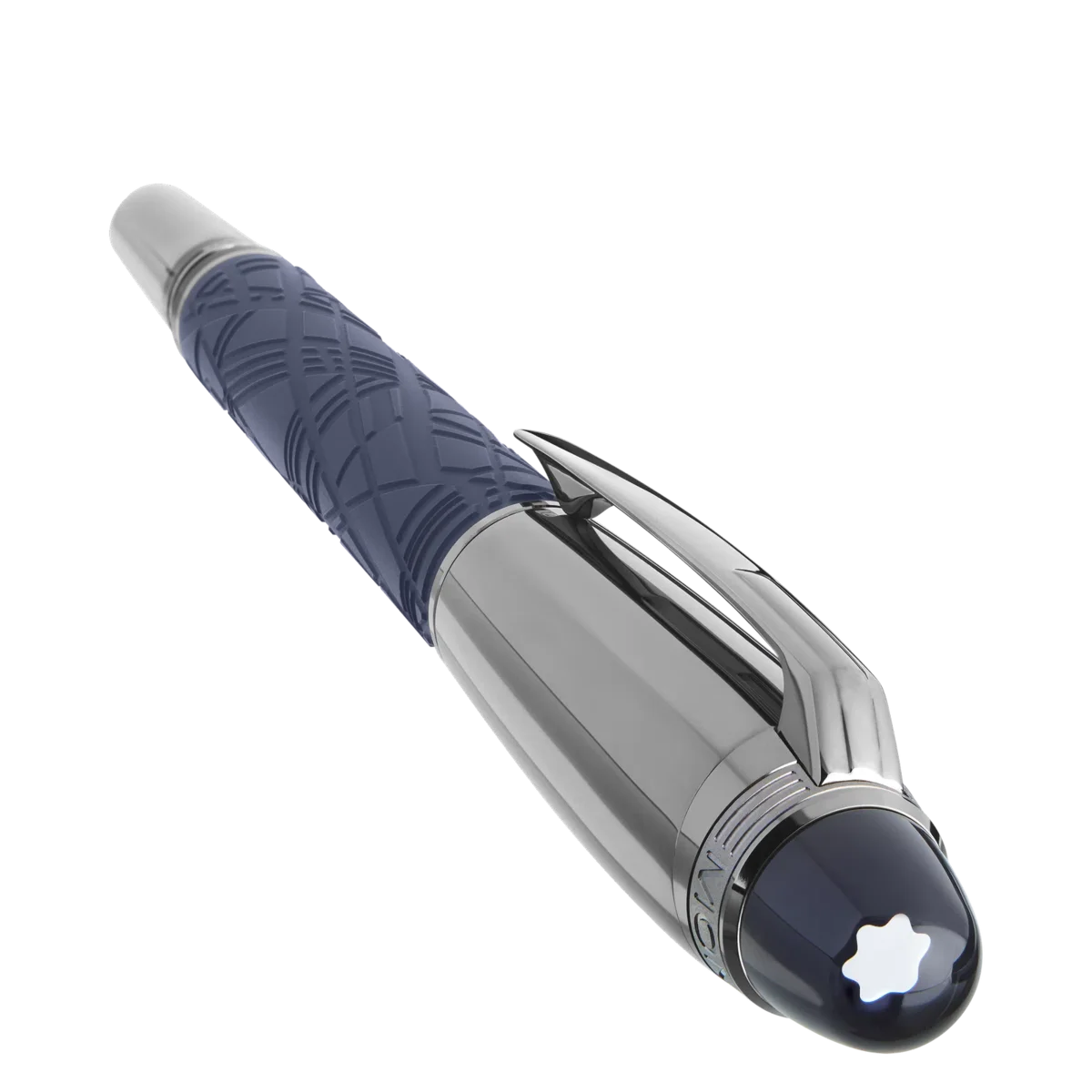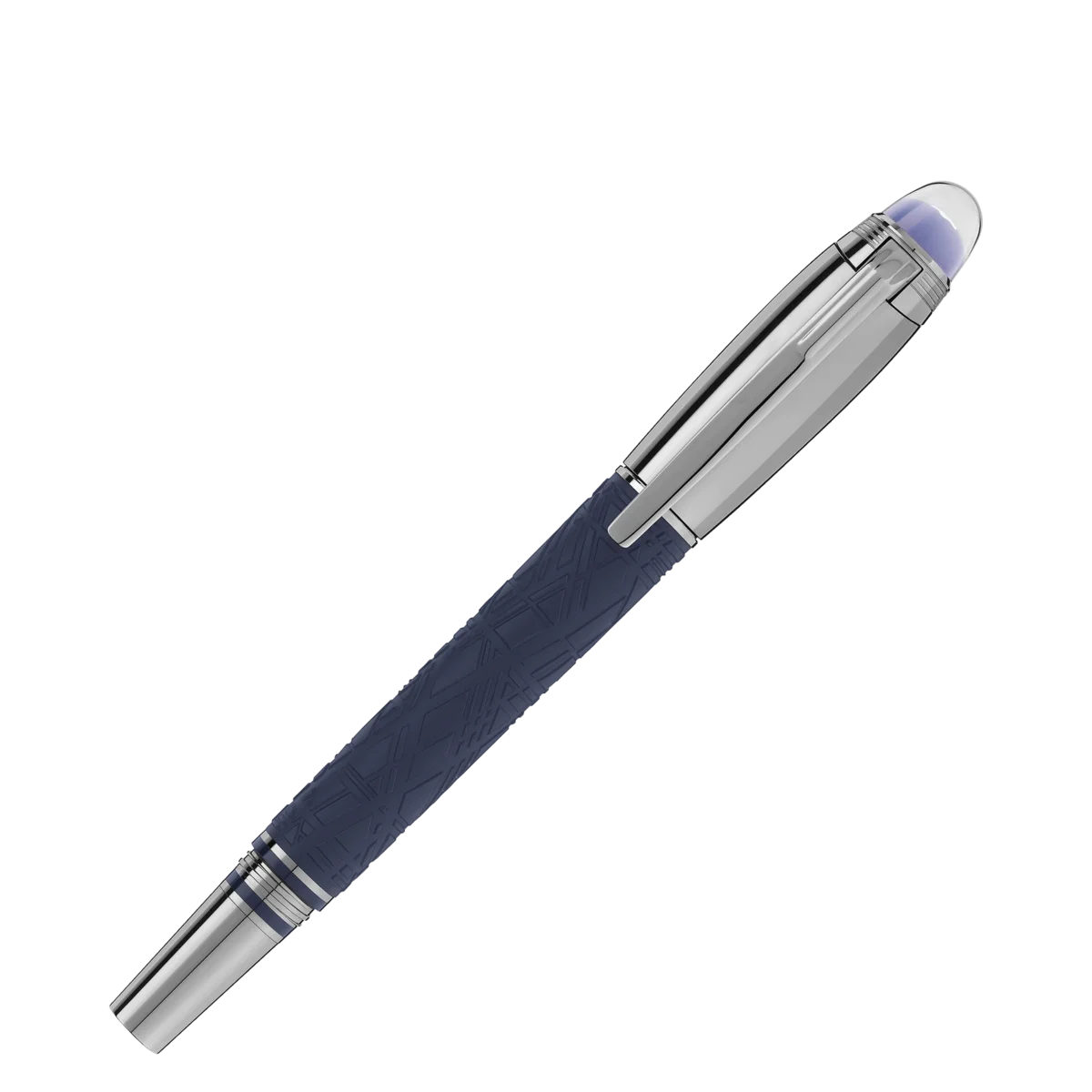 StarWalker SpaceBlue blickt über den Planeten Erde hinaus und wendet sich den Sternen und der Galaxie zu. Diese neue StarWalker-Kollektion verleiht dem Harzschaft ein neues Aussehen mit einem Design, das an die komplexen Strukturen des Widmanstätten-Musters erinnert, einer der faszinierendsten Schöpfungen der Natur. Die Metallkappe und die Beschläge sind mit dunklem Ruthenium beschichtet, begleitet von einem tiefen Weltraumblau für das matte Edelharz, das an die Farbtöne eines Sternenhimmels erinnert. Darüber hinaus ist die Kuppel auf der Kappenspitze, über der das Montblanc-Emblem schwebt, in einem tiefen Weltraumblau gehalten. Der Füllfederhalter ist handgefertigt und verfügt über eine rutheniumbeschichtete Feder aus 585er Gold. Ident-Nr. MB130214 Physikalisches Gewicht 37,25 g Abmessungen 135,7 mm * 14,9 mm