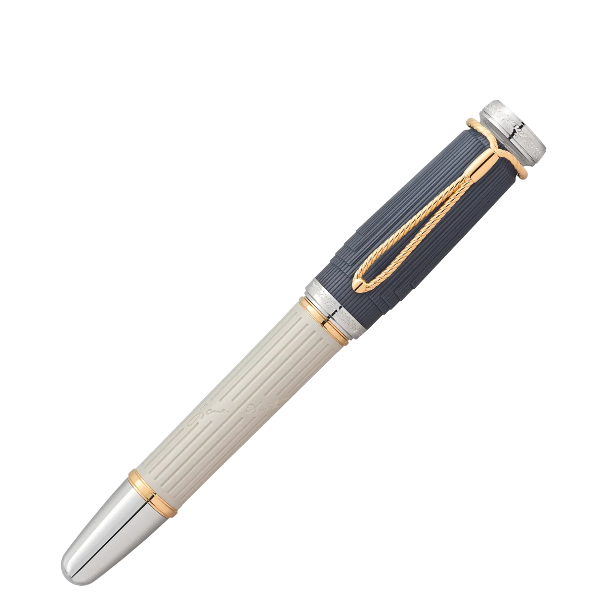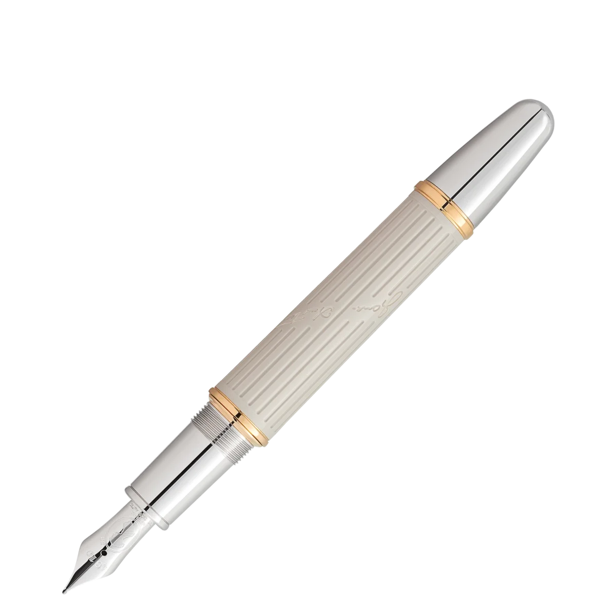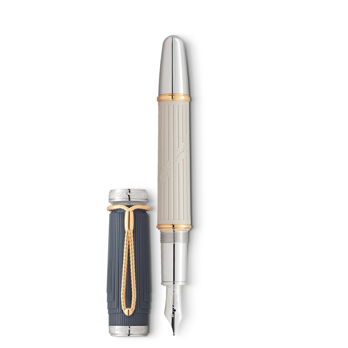 Nur wenige Autoren in der Literaturgeschichte hatten die Fähigkeit, Dialoge zu verfassen und Figuren so elegant, ironisch und scharfsinnig zum Leben zu erwecken wie die britische Autorin Jane Austen. Montblanc hat die Writers Edition Homage to Jane Austen geschaffen, um eine der berühmtesten Autorinnen der englischen Literatur zu würdigen.Diese Edition lässt die Regency-Ära wieder aufleben, als edle Landsitze Schauplatz großartiger Feste waren, die zum Zweck der Pflege sozialer Beziehungen und der Schmiedung von Eheallianzen veranstaltet wurden. Die Kannelüren einer klassischen Säule zieren den eleganten sandsteingrauen Harzkörper, zusammen mit Jane Austens Unterschrift. Die kontrastierende grau-blaue Kappe erinnert an den doppelreihigen Regency-Mantel, den Gentlemen wie Mr. Darcy in „Stolz und Vorurteil“ typischerweise trugen. Goldbeschichtete Ringe auf dem Schaft und platinbeschichtete Beschläge runden das Design ab. Die Gravur der römischen Ziffern XLIII auf dem Kappenring ist eine Anspielung auf das Kapitel des Romans, in dem Elizabeth Bennet zum ersten Mal Mr. Darcys Anwesen sieht.Auf der Titelseite ihres 1811 veröffentlichten Romans „Sinn und Sinnlichkeit“ wurde lediglich angegeben, dass das Werk „von einer Dame“ geschrieben wurde. Diese Angabe zur Urheberschaft ziert zusammen mit dem Montblanc-Emblem die Kappe der Writers Edition Homage to Jane Austen Limited Edition. Die Silhouette des Schreibgeräts selbst ähnelt einem Wachssiegelstempel. Der Clip ist ebenso ungewöhnlich wie die Kappe. Er hat die Form einer geflochtenen Kordel mit Kordelzugverschluss und ähnelt einem „Retikül”, einer Art Tasche, die Frauen um 1800 benutzten, um ihr Puder, ihren Spiegel und das unverzichtbare Taschentuch zu transportieren. Die einzige bekannte Silhouette von Jane Austen, die ihre zarten Gesichtszüge zeigt, ist als künstlerische Gravur auf der handgefertigten, rhodinierten Feder aus massivem 750er Gold verewigt.