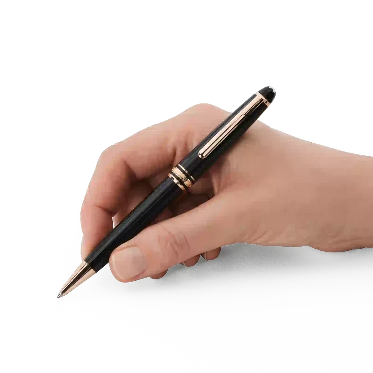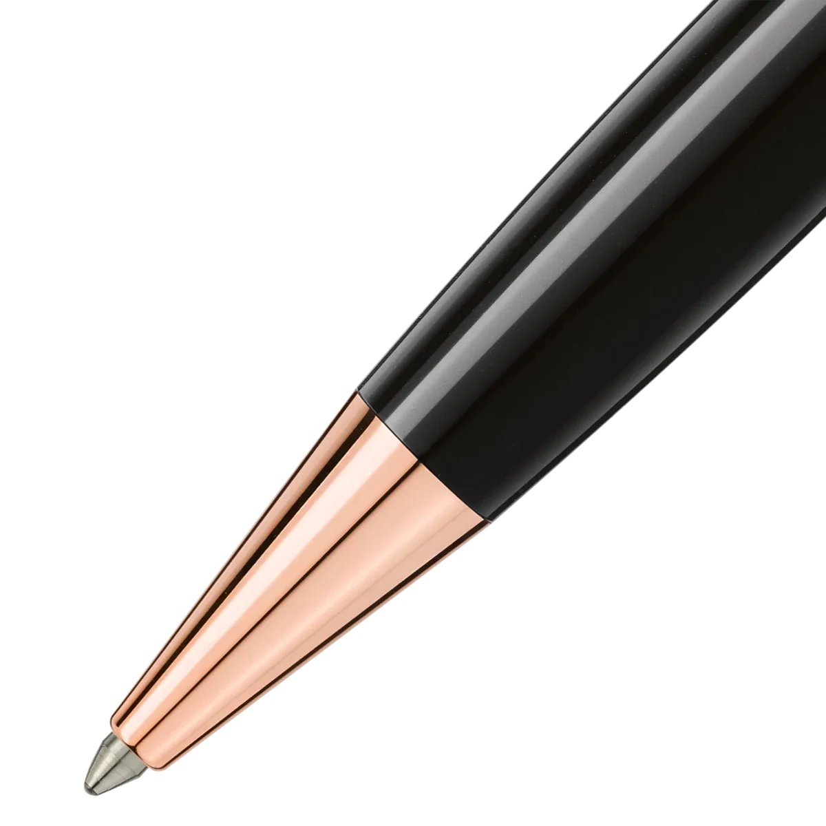 Die Montblanc Meisterstück Classique Roségold-beschichtete Kollektion ist ein Design, das Geschichte schreibt. Das 1924 eingeführte Meisterstück, dessen Name „Meisterwerk” bedeutet, ist zum Symbol für hochwertige Luxus-Schreibgeräte geworden. Die Kappe und der Schaft sind aus schwarzem Edelharz gefertigt und mit dem ikonischen weißen Montblanc-Emblem auf der Kappenspitze verziert. Ident-Nr. MB132488 Physikalisches Gewicht 22,4 g Abmessungen 137,1 mm * 12,5 mm