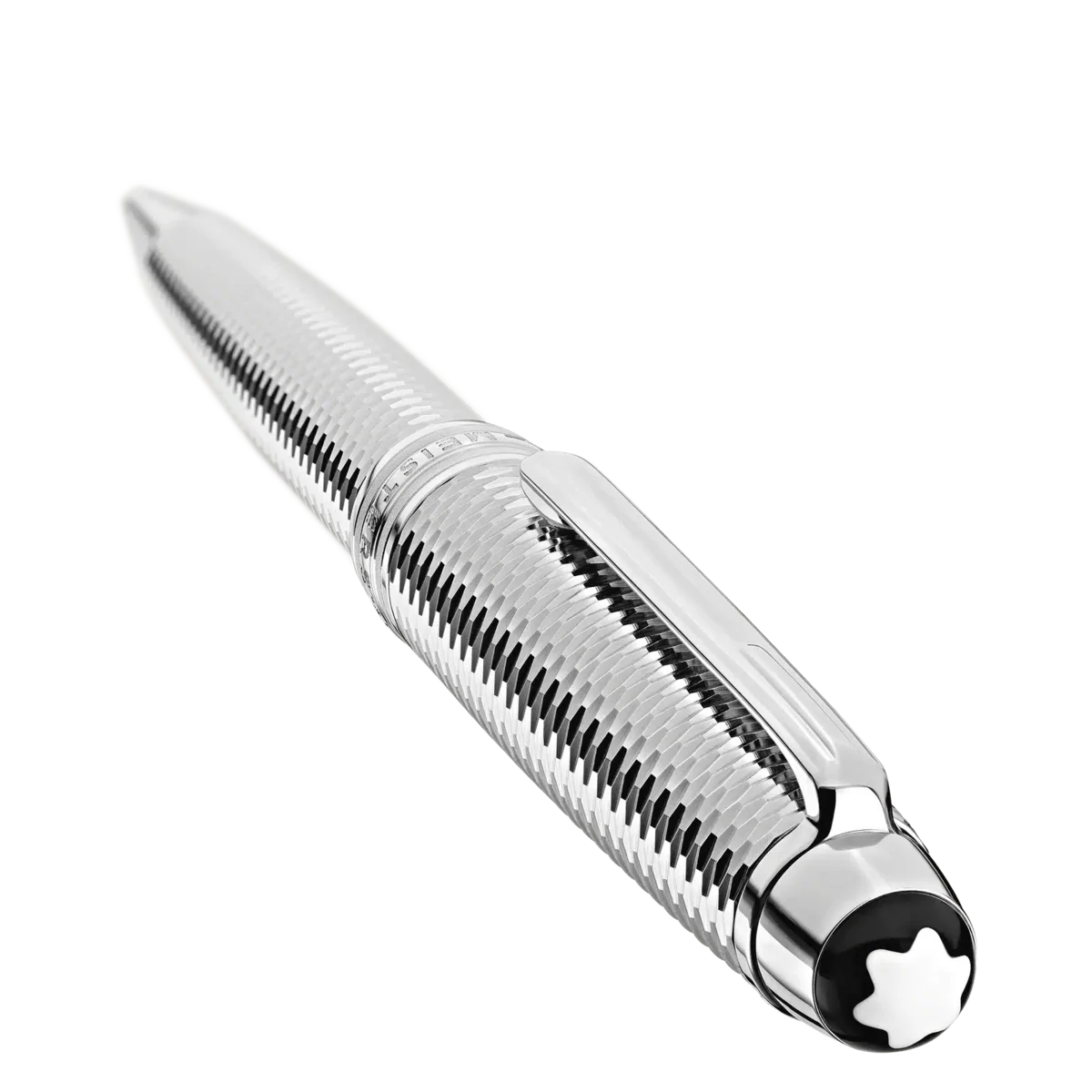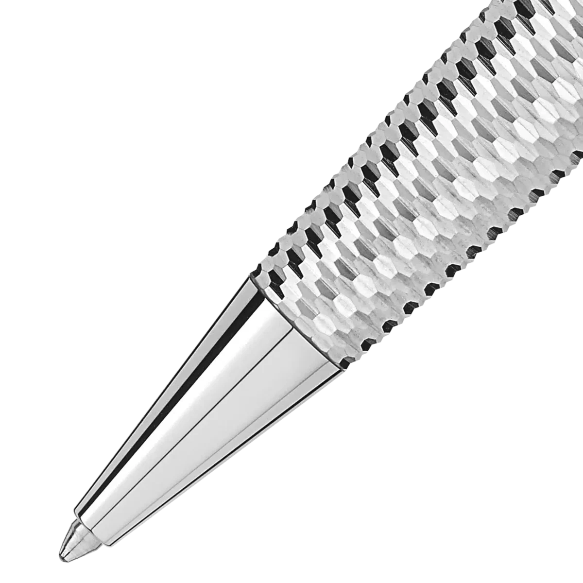 Der Meisterstück Solitaire Geometric Dimension entstand aus dem Wunsch heraus, das klassische Design von Montblanc mit einzigartigen Materialien zu verbinden. Dieses Schreibgerät, das mit einem dreidimensionalen geometrischen Muster mit optischem Effekt in einem raffinierten Platin-Ton graviert ist, verfügt über einen platinbeschichteten Clip und drei platinbeschichtete Ringe, in die der Markenname Montblanc eingeprägt ist. Mit dem Montblanc Emblem versehen, spricht er die Individualität jedes Einzelnen an.