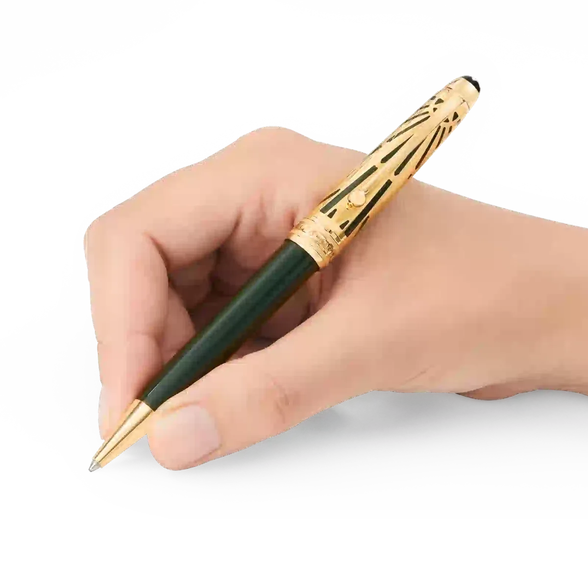 Seit seiner Einführung im Jahr 1924 gilt der Meisterstück von Montblanc weithin als das Inbegriff eines edlen Schreibgeräts, das für raffinierten Geschmack und eine kühne Selbstdarstellung steht. Ob zum Verfassen eines Liebesbriefes oder zum Unterzeichnen eines historischen Dokuments – der Meisterstück hat die Seiten der Geschichte nachhaltig geprägt. Um diesen Meilenstein zu würdigen, hat Montblanc tief in seinen Archiven gegraben und die Origin-Kollektion geschaffen, die eine Hommage an die reiche Geschichte und das Erbe der Marke darstellt. Die Kollektion ist inspiriert von frühen Entwürfen aus unseren Archiven sowie von Designmerkmalen der ersten Meisterstück-Editionen, die den Gründungsgeist einfangen und mit modernem Flair versehen.Das aufwendige Muster auf der goldbeschichteten Kappe, die mit grünem Lack überzogen ist, erinnert an ein unveröffentlichtes Design, das jahrzehntelang verborgen war. Damit hat Montblanc endlich die Gelegenheit, dieses längst vergessene Design, das an die Art-Déco-Periode erinnert, zu präsentieren. Der Clip ist eine Hommage an frühe Clipformen, die bei einigen der ersten Meisterstück-Schreibgeräten zu finden waren, und weckt ein Gefühl von Nostalgie. Bei genauerer Betrachtung entdeckt man das ursprüngliche Meisterstück-Logo, das seit seiner Einführung als Symbol für hohe Qualität die Kappe ziert. Diese Jubiläumsausgabe ist mit einem speziellen Kappenring verziert, auf dem die Jahreszahlen „1924” und „2024” zu sehen sind. Auf weitere 100 Jahre Exzellenz mit Meisterstück!
