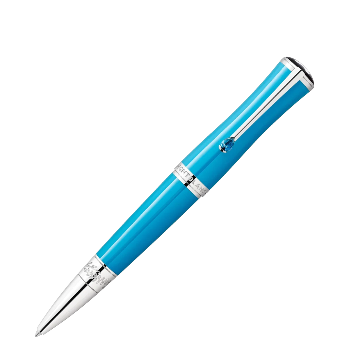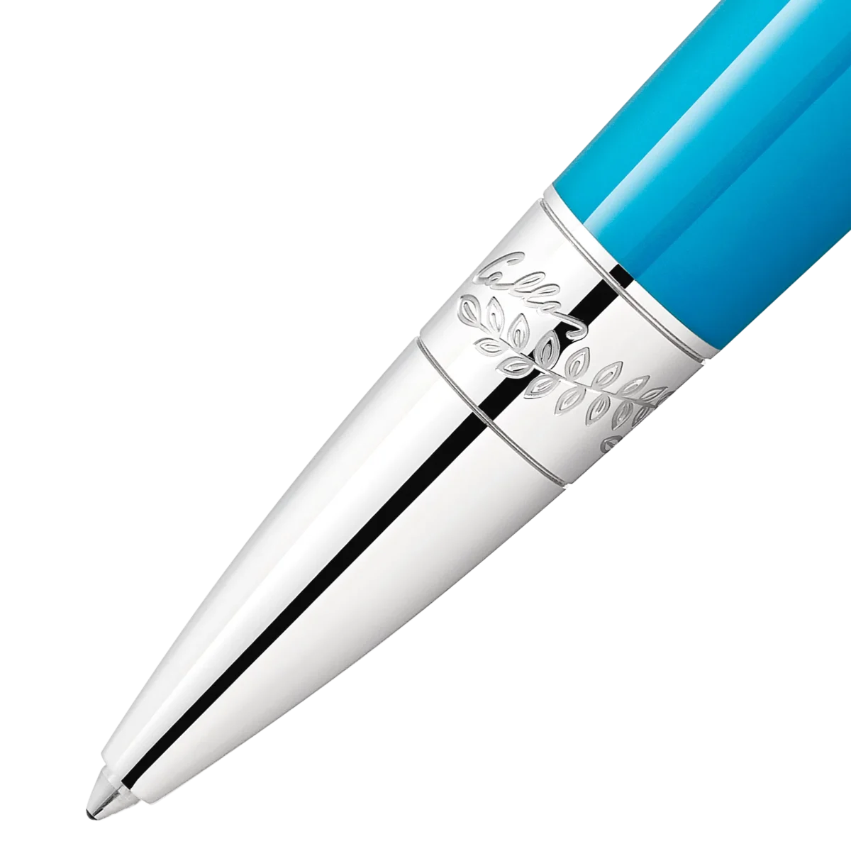 Der Montblanc Maria Callas Special Edition Turquoise-Coloured ist einer der charismatischsten Sopranistinnen des 20. Jahrhunderts und einer geschätzten Stilikone gewidmet. Mit ihrem Talent, ihrer Leidenschaft und ihrer Persönlichkeit verkörperte sie ein bestimmtes Ideal der Operndiva. In einigen der größten Opernhäuser der Welt, von der Mailänder Scala über die Pariser Oper bis hin zur New Yorker Metropolitan Opera, war sie als „La Divina” – die Göttliche – bekannt. Die Edition hebt eine ihrer Lieblingsfarben, Türkis, im kostbaren Harz der Kappe und des Schafts hervor und spiegelt gleichzeitig Maria Callas‘ anmutige Schönheit in ihrer schlanken, eleganten Silhouette wider. In Erinnerung an ihre vom Meer umgebene griechische Heimat ist der platinbeschichtete Clip mit einem synthetischen Stein verziert, dessen Farbe an das strahlende Türkisblau der Ägäis erinnert. Ein Kostümdetail aus einer ihrer bekanntesten Belcanto-Rollen, Bellinis „Norma”, spiegelt sich in einem Muster aus Lorbeerblättern wider, das den platinbeschichteten Kegel der Edition umgibt, zusammen mit der geprägten Signatur der berühmten Sopranistin.