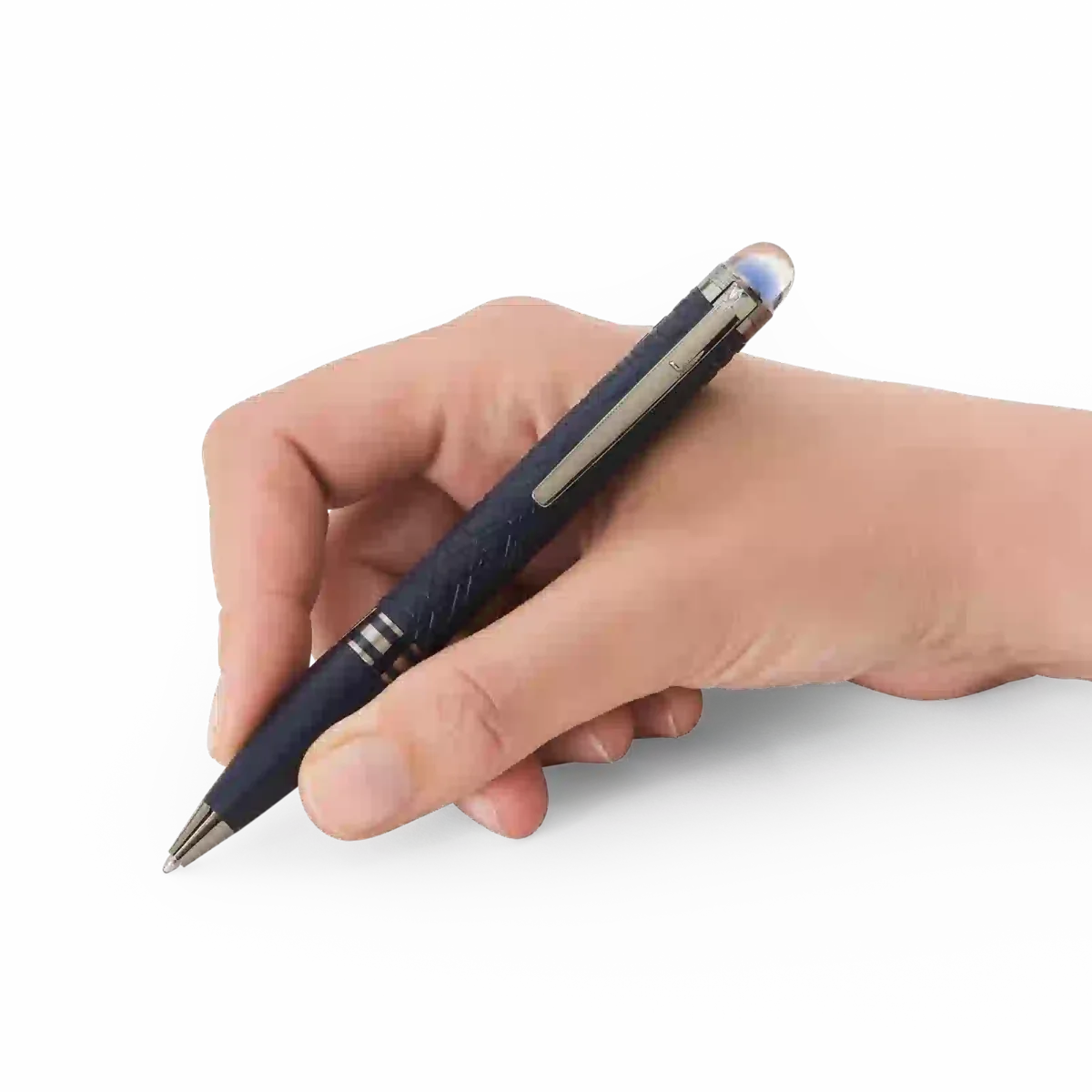 StarWalker SpaceBlue blickt über den Planeten Erde hinaus und wendet sich den Sternen und der Galaxie zu. Diese neue StarWalker-Kollektion verleiht dem Harzschaft ein neues Aussehen mit einem Design, das an die komplexen Strukturen des Widmanstätten-Musters erinnert, einer der faszinierendsten Schöpfungen der Natur. Alle Metallteile sind mit dunklem Ruthenium beschichtet, begleitet von einem tiefen Weltraumblau für das matte Edelharz, das an die Farbtöne eines Sternenhimmels erinnert. Darüber hinaus ist die Kuppel auf der Kappe, über der das Montblanc Emblem schwebt, in einem tiefen Weltraumblau gehalten. Ident-Nr. MB130213 Physikalisches Gewicht 31,6 g Abmessungen 134,5 mm * 13,1 mm