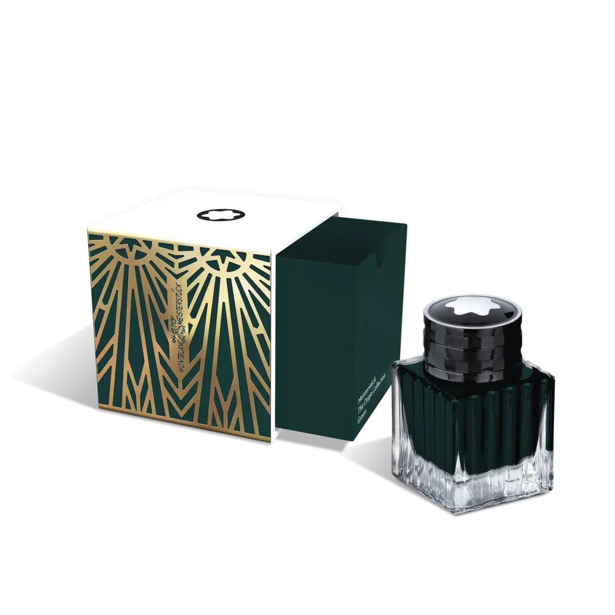 Die Montblanc Special Edition Tintenflaschen werden in einer quadratischen Verpackung geliefert, die an die Konzepte und Themen der jeweiligen Kollektion erinnert und sie zu wertvollen Sammlerstücken für Montblanc-Liebhaber macht. Anlässlich des 100-jährigen Jubiläums der Meisterstück-Kollektion ist die Farbe der Origin Green-Tinte von einigen der frühen farbigen Meisterstück-Schreibgeräte aus den 1920er Jahren inspiriert. Ident-Nr. MB133069