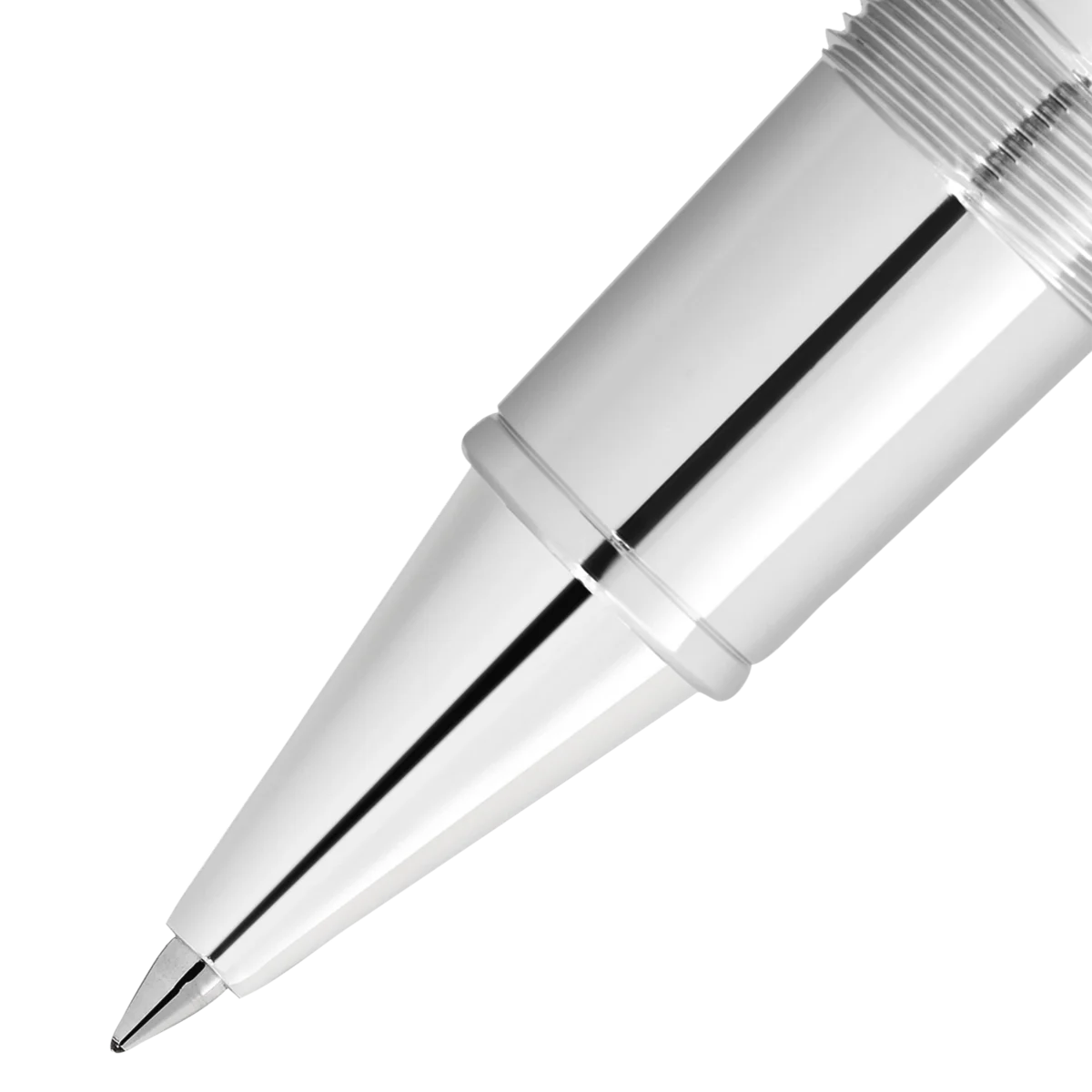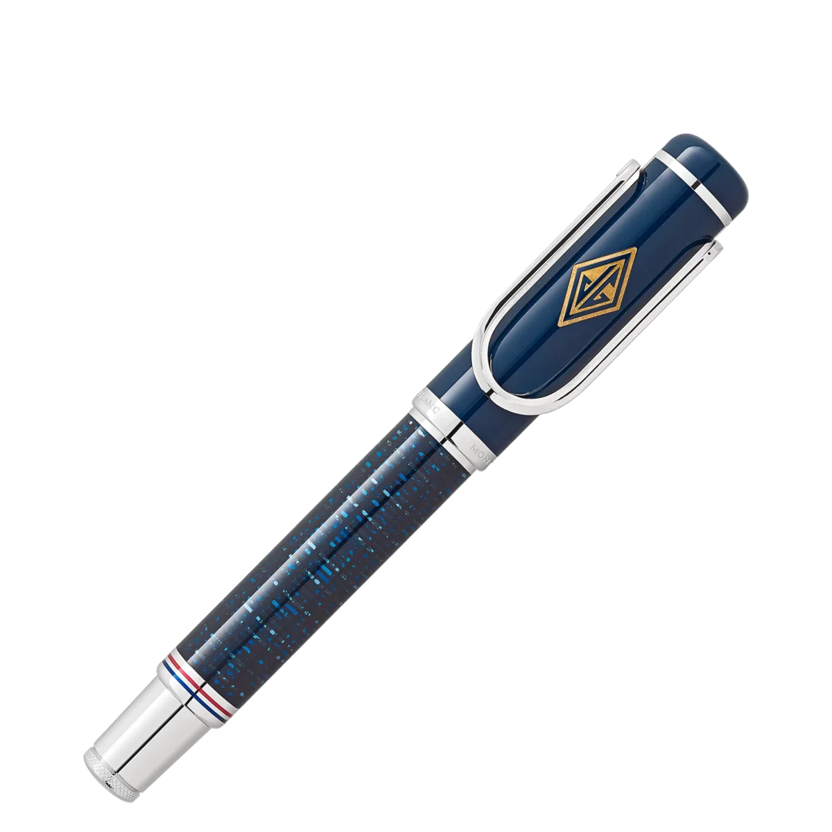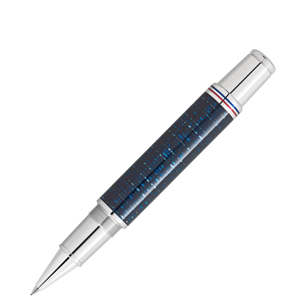 Bestimmte Romane gehen in die Literaturgeschichte ein und werden gleichzeitig zum Symbol einer ganzen Epoche. F. Scott Fitzgeralds „Der große Gatsby“ ist ein solches Juwel der modernen amerikanischen Literatur. Der 1925 veröffentlichte Roman zeichnet ein faszinierendes Bild des Jazz-Zeitalters und der „Roaring Twenties“, einer Zeit beispiellosen Reichtums und maßlosen Genusses. Das pulsierende New York City, die opulenten Villen von Long Island und die schillernden Partys der High Society bilden den Hintergrund für die Geschichte von Jay Gatsby, einem mysteriösen Millionär, der vor nichts zurückschreckt, um die Zuneigung seiner verlorenen Jugendliebe Daisy Buchanan zurückzugewinnen.Das schillernde New York der Gatsby-Ära, wo die funkelnden Art-déco-Wolkenkratzer am blauen Abendhimmel das Design der Sonderedition „Great Characters Homage to The Great Gatsby“ inspirierten. Als Hommage an ein frühes Montblanc-Schreibgerät aus der Art-déco-Ära scheint die Oberfläche des Schafts, die mit einer speziellen Technik gefertigt wurde, die hell erleuchteten Fassaden der Hochhäuser der boomenden Stadt bei Nacht widerzuspiegeln. Das fluoreszierende Montblanc Emblem auf der Kappe ist kein fiktives Element, sondern leuchtet tatsächlich wie das grüne Licht am Steg von Daisys Haus in „The Great Gatsby“. Es fängt tagsüber Licht ein und speichert es, sodass es im Dunkeln leuchtet. Die offensichtliche Macht des Geldes wird in dieser Edition durch den platinbeschichteten Clip symbolisiert, der die Form einer Geldklammer hat. Seine abgerundete Öffnung zieren die Initialen von Jay Gatsby als rhombusförmiges, goldbeschichtetes Art-Déco-Monogramm. Der Mythos des amerikanischen Traums und das Design der oft stilvollen Flachmänner der Art-Déco-Zeit werden durch den Kegel, der den gravierten Schraubverschluss eines Flachmannes imitiert, und die feinen Ringe in den Farben der amerikanischen Flagge, die ihn umgeben, aufgegriffen.