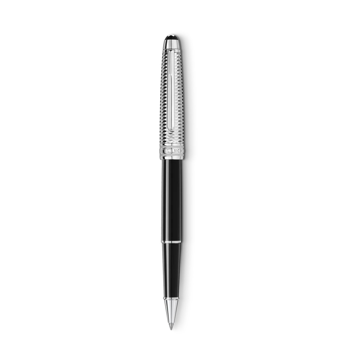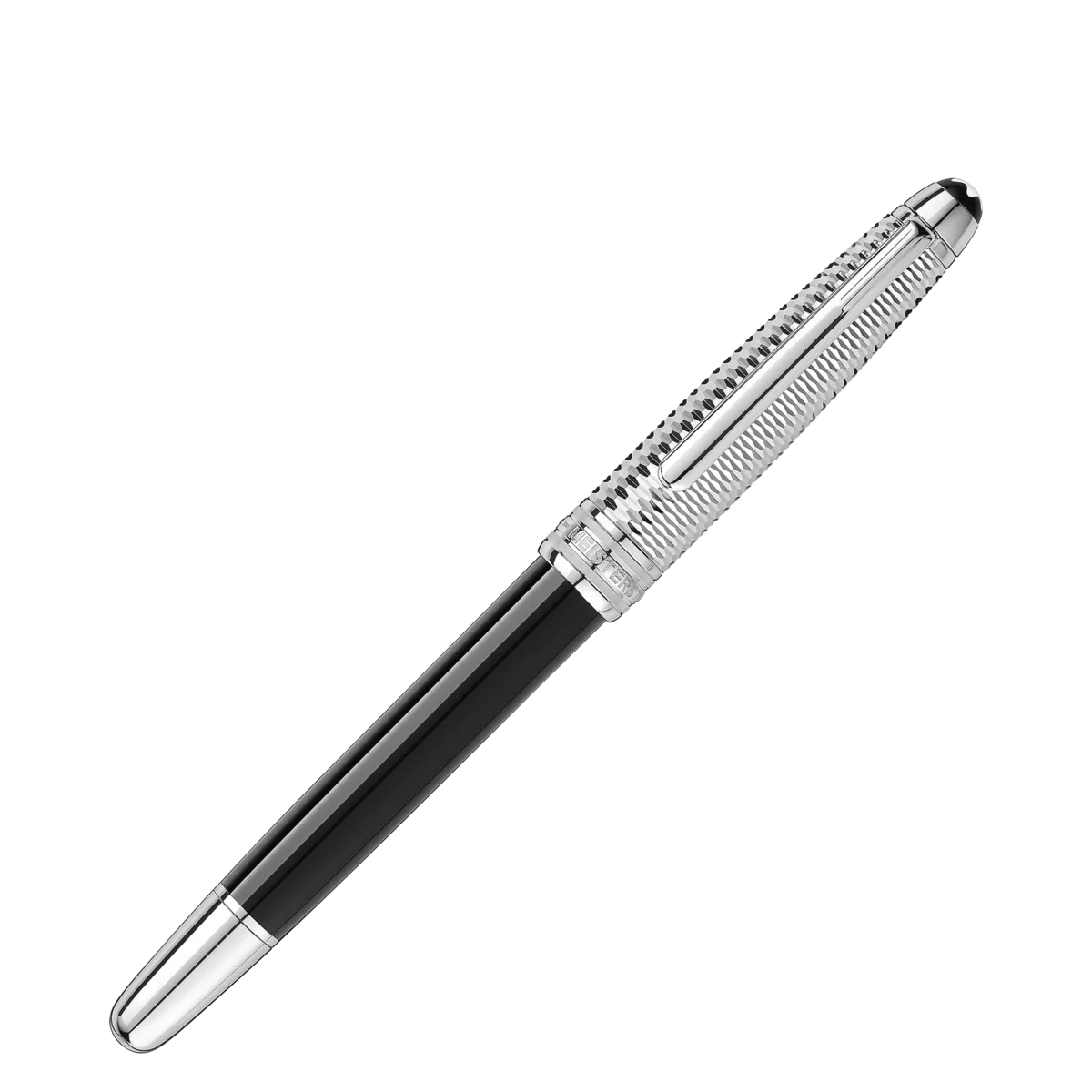 Der Meisterstück Solitaire Geometric Dimension entstand aus dem Wunsch heraus, das klassische Design von Montblanc mit einzigartigen Materialien zu verbinden. Dieses Schreibgerät aus schwarzem Edelharz ist mit einem dreidimensionalen geometrischen Muster mit optischem Effekt in einem raffinierten Platin-Ton, einem platinbeschichteten Clip und drei platinbeschichteten Ringen mit dem geprägten Montblanc-Markennamen versehen. Veredelt mit dem Montblanc Emblem, spricht es die Individualität jedes Einzelnen an.