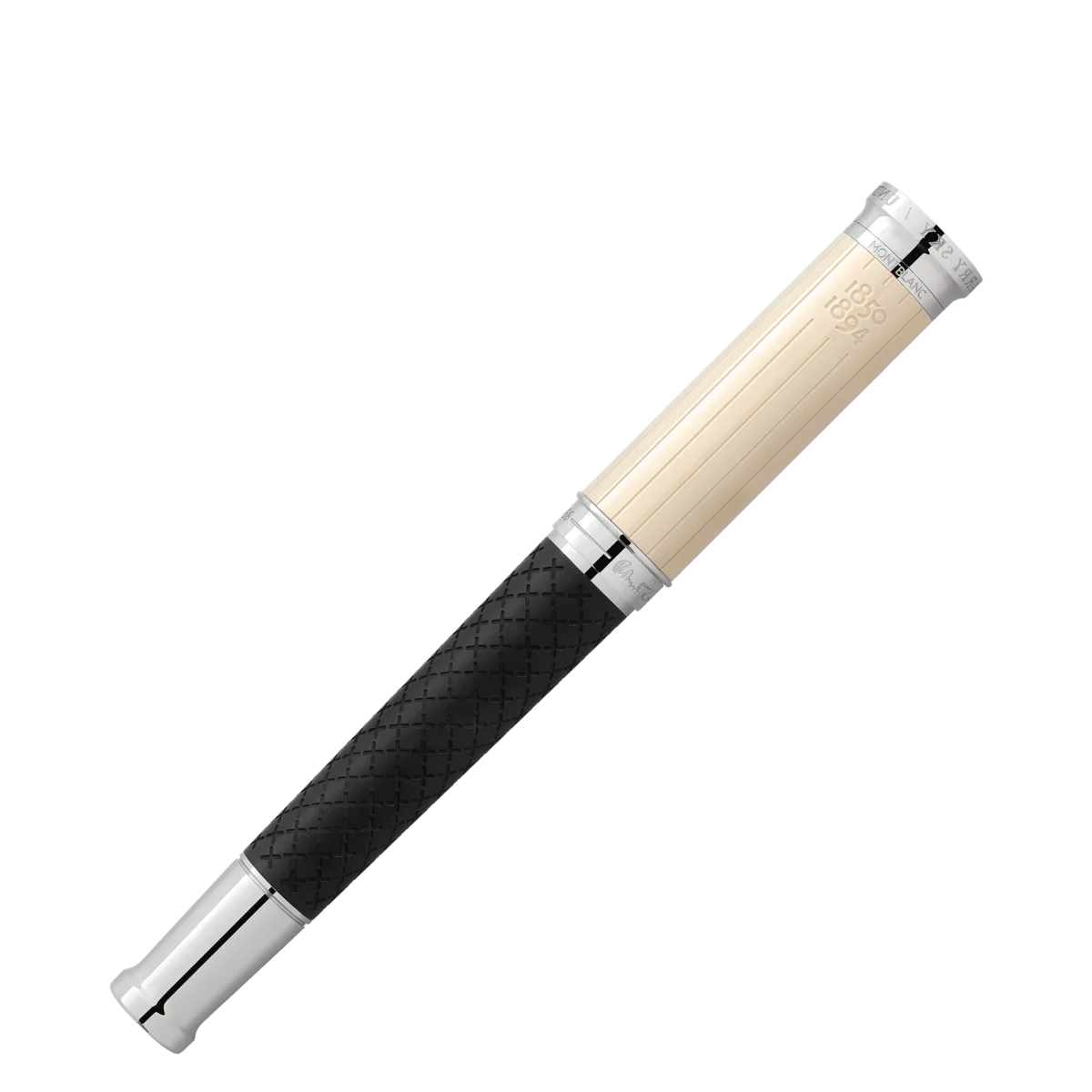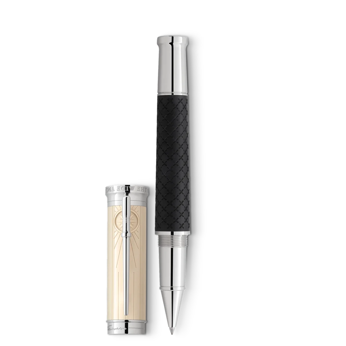 Robert Louis Stevenson, 1850 in Edinburgh, Schottland, geboren, hatte zwei große Wünsche: Freiheit und das Eintauchen in andere Welten. Er verfasste Essays und Reiseberichte sowie seine legendären Abenteuergeschichten, die von markanten Charakteren bevölkert sind, deren Namen den Lesern auf der ganzen Welt einen Schauer über den Rücken jagen: Long John Silver, Captain Flint, Jekyll und Hyde. Die Montblanc Writers Edition Homage to Robert Louis Stevenson ist diesem fantasievollen Geschichtenerzähler gewidmet. Der Roman „Die Schatzinsel“ inspirierte viele Designdetails der Edition. Die Gesamtform des Schreibgeräts und die Ringe auf dem Konus vermitteln den Eindruck eines historischen, ausziehbaren Fernglases. Der schwarze Schaft aus Edelharz ist mit eingravierten Kreuzen verziert, darunter ein größeres „X“, wie es die Position des Schatzes auf einer Karte markiert. Vertikale Linien, die an die Planken des Schoners „Hispaniola” und eine traditionelle Seekiste erinnern, zieren die Kappe der Writers Edition. Hinter dem platinbeschichteten Clip laufen die Linien in einer Kompassrose zusammen, während der Clip die Form eines Belaying-Pins imitiert, an dem die Leinen der Schiffstaue befestigt würden. Die Kappe wird von dem Montblanc Emblem gekrönt, das mit dem Symbol der Piraten, einem Totenkopf, verziert ist, der in der Mitte erhöht ist. Der Kappenring ist mit einer Gravur von Stevensons Unterschrift neben dem Erscheinungsdatum seines ersten Werks „The Pentland Rising“ aus dem Jahr 1866 verziert. Die Daten 1850–1894 sind auf der Kappe eingraviert, um an das Leben von Robert Louis Stevenson zu erinnern.