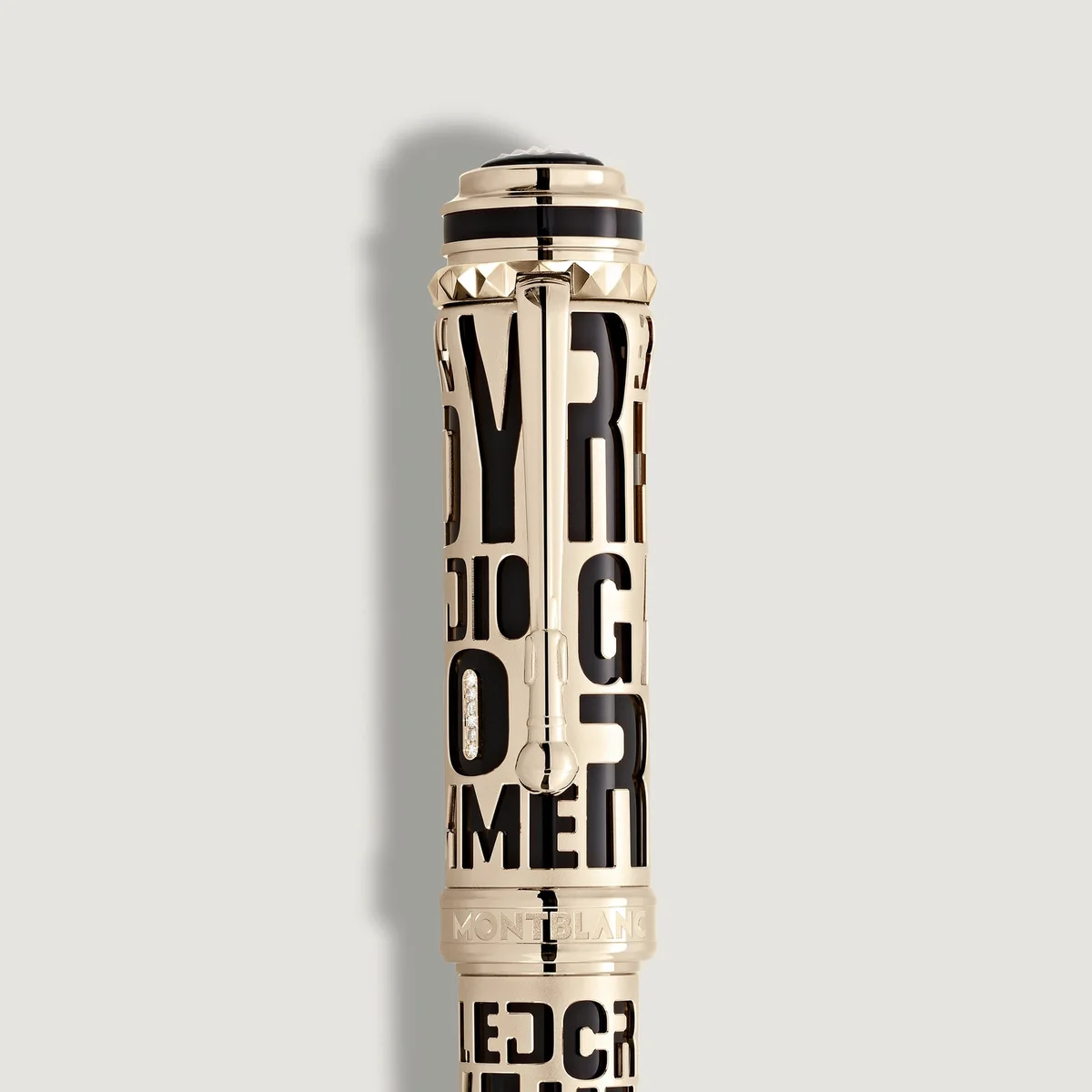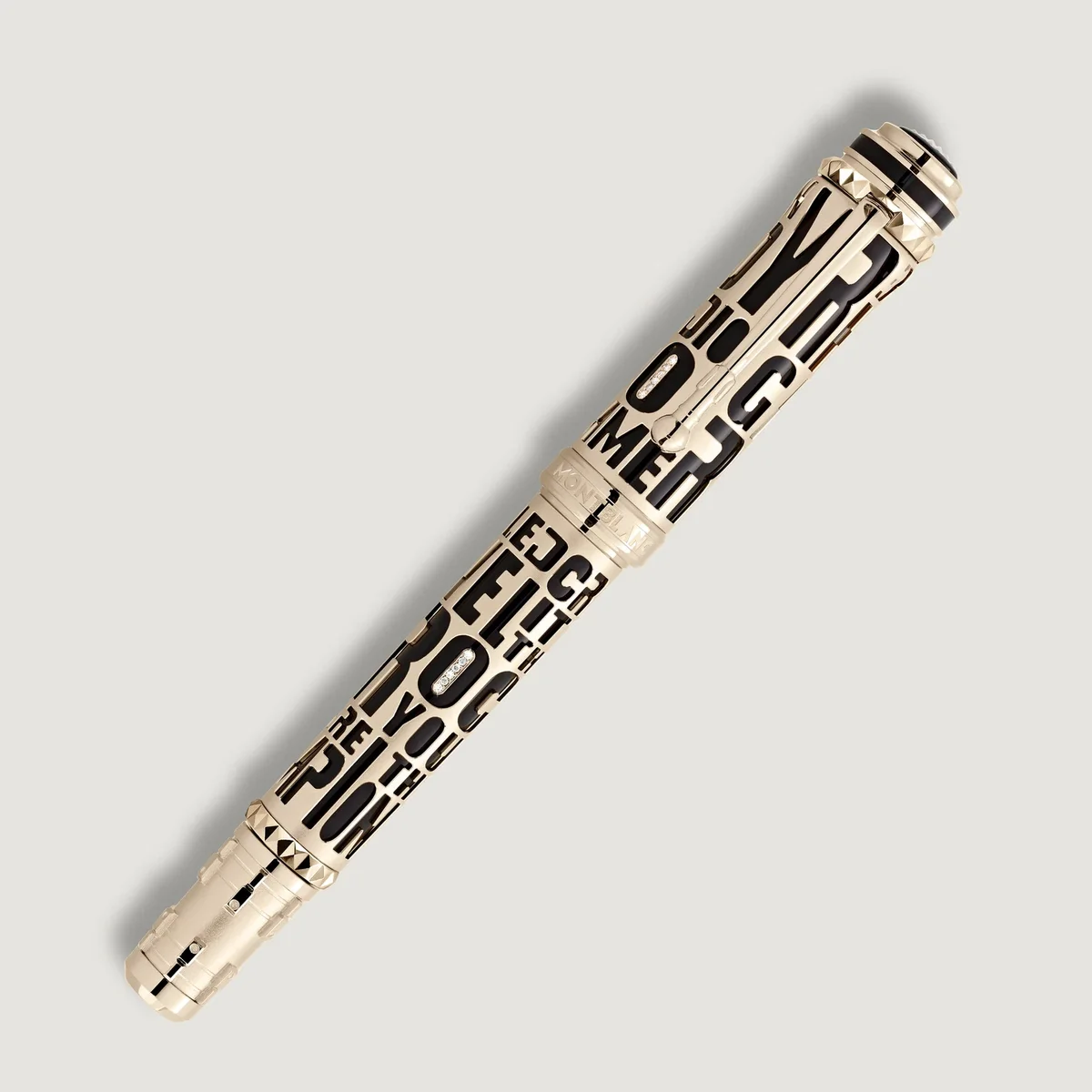 In der reichen Geschichte der Rockmusik gibt es nur wenige Namen, die so konstant glänzen wie der von Queen. Mit einer Karriere, die sich über fünf Jahrzehnte erstreckt, ist die Band eine der erfolgreichsten aller Zeiten. In dieser Zeit verkörperte Queen die Kraft der musikalischen Kreativität. Sie schufen ihr eigenes musikalisches Universum, bestehend aus einer Kombination aus Hardrock, Glamrock, Pop, Funk und Oper, und sprengten damit die Grenzen zwischen den Genres. Montblanc widmet seine Great Characters Homage to Queen Limited Edition 95 diesen Ikonen der Rockmusik. Ihr Auftritt beim legendären Live Aid-Benefizkonzert 1985 in London gilt als einer der größten Momente in der Geschichte der Rockmusik. Die sechs Songs, die Queen spielte, zieren die massive Au 750 Signature Gold-Skelettüberlagerung und kontrastieren mit dem tiefschwarzen Lack darunter: Bohemian Rhapsody, Radio Ga Ga, Hammer to Fall, Crazy Little Thing Called Love, We Will Rock You und der mitreißende Schlusssong We Are the Champions. Das eingravierte Muster auf der Vorderseite ist dem Bühnenbild dieses unvergesslichen Konzerts nachempfunden.Die einzige extravagante Note, die sich der Frontmann gönnte, ein Nietarmband und ein passender Gürtel, inspirierte das Design der Kappe und der Konusringe. Ein Mikrofonständer inspirierte das Design des Clips, der die mitreißenden Live-Auftritte von Queen symbolisiert. Eine Krone, die Freddie Mercury manchmal während der Schlussdarbietung von God Save The Queen trug, war die Inspiration für die Silhouette der Kappenspitze.Das Design der Membran ist eine Hommage an die charakteristischen Lautstärke- und Klangregler der von Brian May selbst gebauten E-Gitarre. Das Trommelmuster auf der Membran ehrt außerdem Gründungsmitglied Roger Taylor, einen brillanten Schlagzeuger und Komponisten. Vier Jahre nach Freddie Mercurys Tod war seine Stimme wieder zu hören: Das Album „Made in Heaven“ von 1995 enthielt seine allerletzte Aufnahme. Das Jahr der Veröffentlichung bestimmte die limitierte Stückzahl von 95 Exemplaren, während das LP-Cover – die Silhouette von Freddie Mercury in einer seiner ikonischsten, triumphalen Bühnenposen – die Prägung auf der handgefertigten, zweifarbigen Feder aus massivem 750er Gold inspirierte.